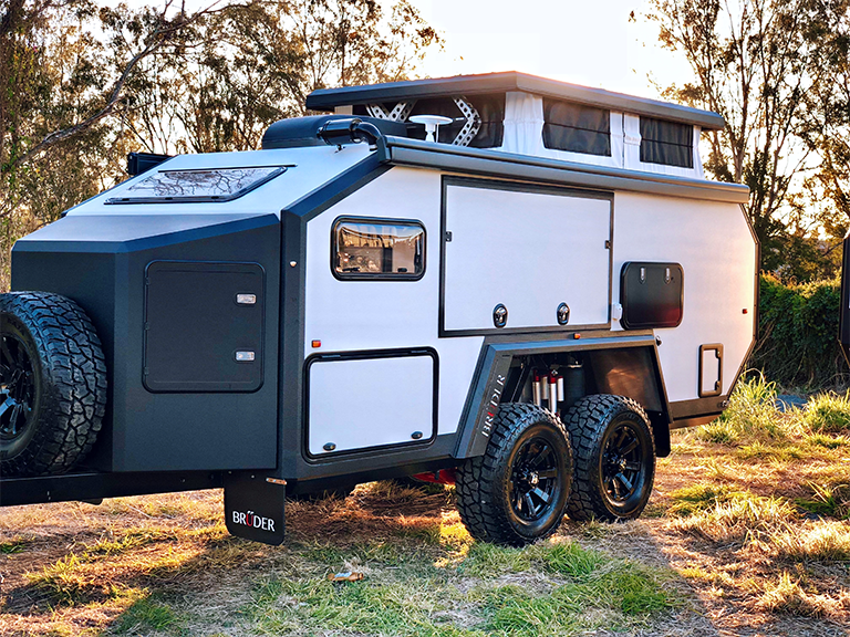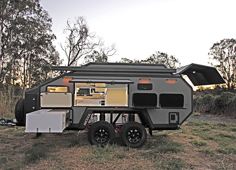 露營拖車是不少露營族的終極目標,在拖車內有著良好的布置,讓你可以隨時擁有一個溫暖的家,但有一個缺點就是通常露營拖車的行動能力很差,需要平坦道路才能夠行駛,但現在Brüder打破你的想像,只要你的車可以到的地方,這輛拖車就陪你一起上山下海也沒問題!