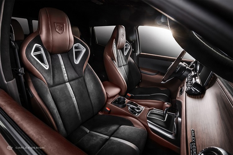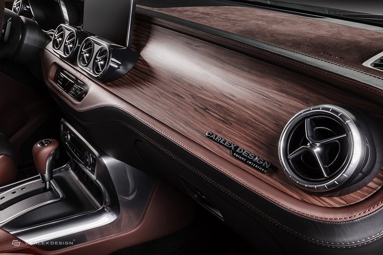 車內經過升級後,與一般的X-Class相比質感提升非常多。利用與車身類似的棕色與黑色搭配為主調,中控台安裝上木紋飾板增加奢華感,同時也使用頂級皮革與麂皮來包覆座椅、門板、中控台上部、中央鞍座等。另外,座椅支撐、排檔桿、手煞車、中控台和門板等,大量使用棕色皮革與黑色形成強烈對比。厲害之處還不只於此,方向盤、地板、中控面板都採用木質作為材料,握著方向盤、腳踩著木質地板,這種感覺就像是坐在家裡的沙發,從內心善發出來的是一種享受