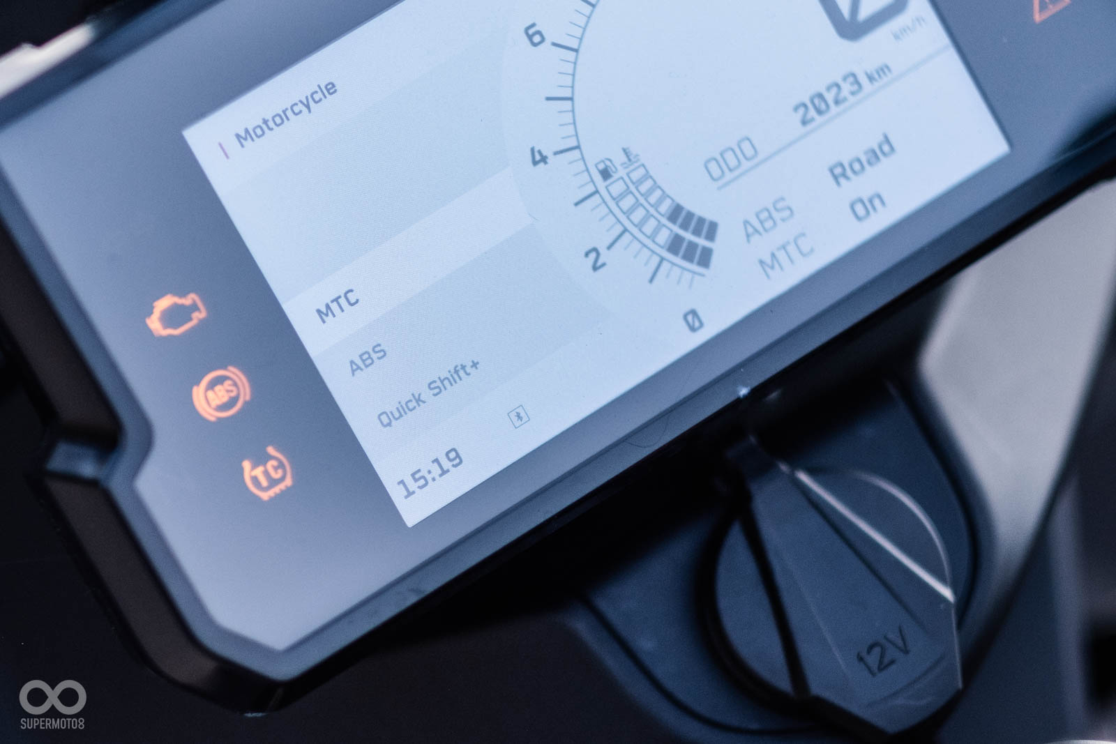 電控、配備方面,390 ADVENTURE擁有同級距中最豐富的電控系統和配備,包含滑動式離合器、MTC循跡控制系統、彎道ABS(後輪可獨立關閉)、KTM Quickshifter+進退快排、5吋TFT全彩液晶儀表、手機藍芽連線等,除了上述的電控配備之外,這次試乘車還加裝了對檔車新手非常友善的「離心式離合器」選配。