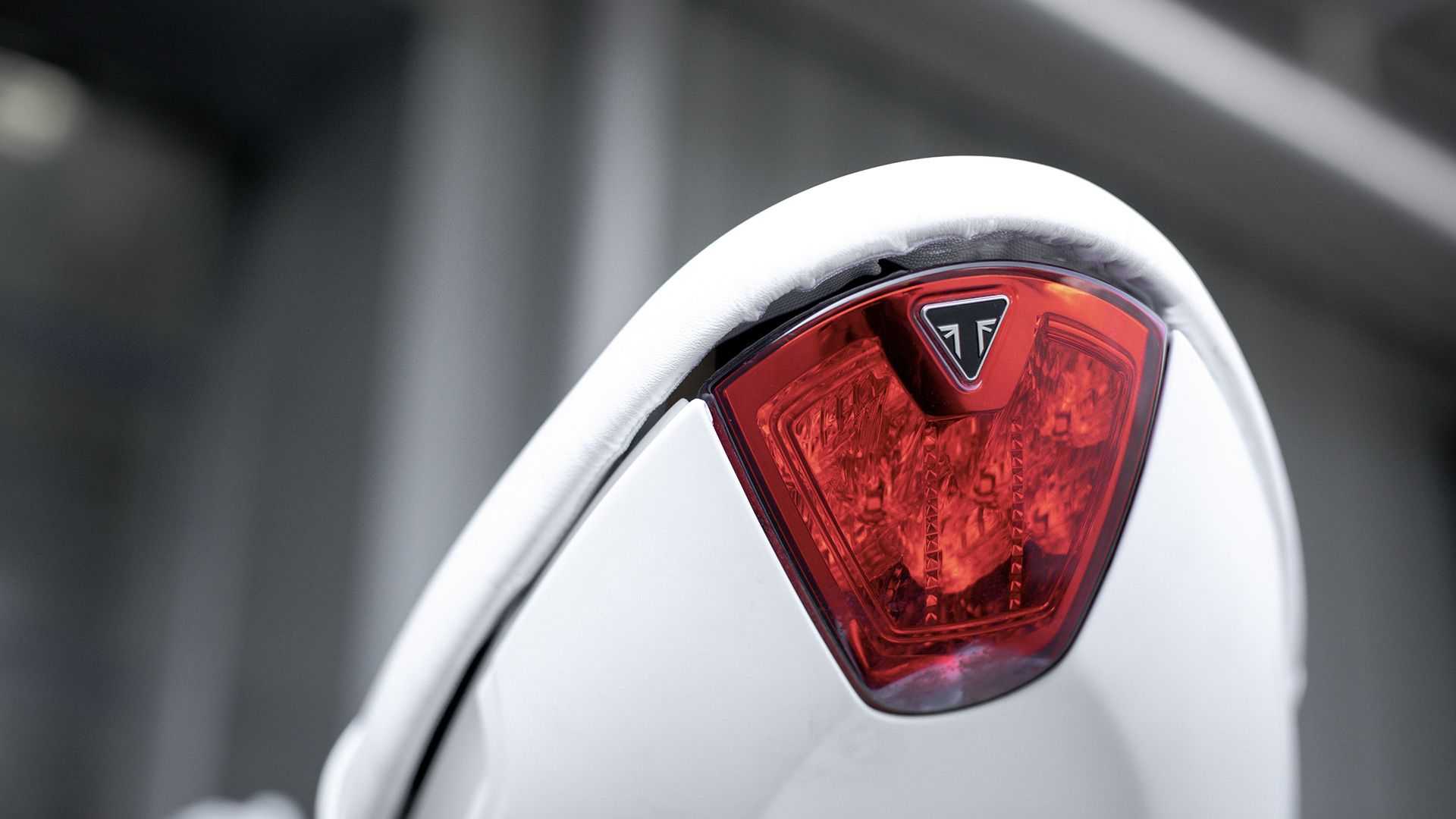 油箱、車身的線條刻畫也比Street Triple銳利的肌肉紋理更圓潤,但滑順之中仍能看出TRIUMPH想賦予TRIDENT的動感氣息;一體式坐墊也比Street Triple的分離式坐墊提供更多舒適度;短車尾的線條收束展現性能氛圍,給人更熱血的視覺感受。