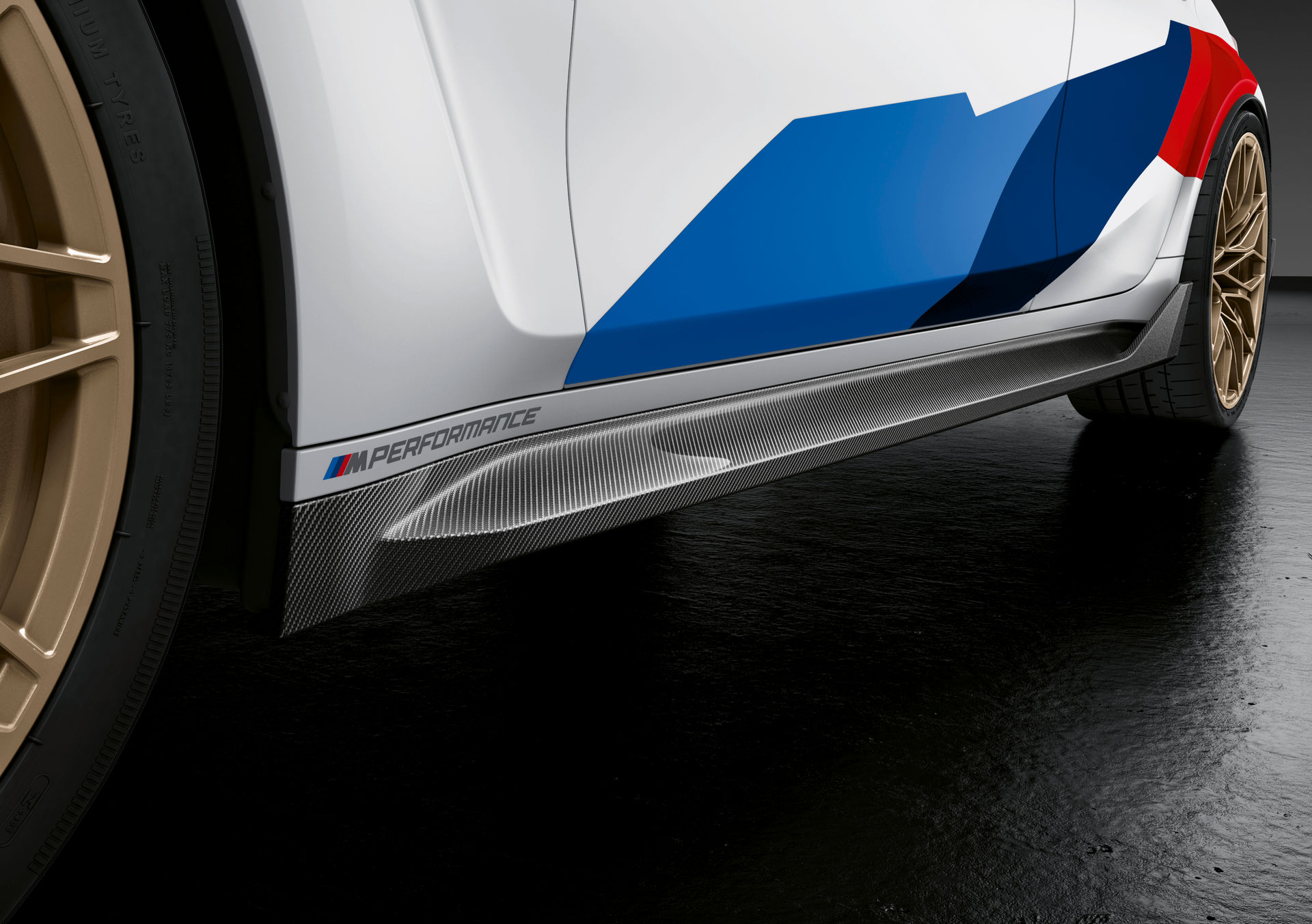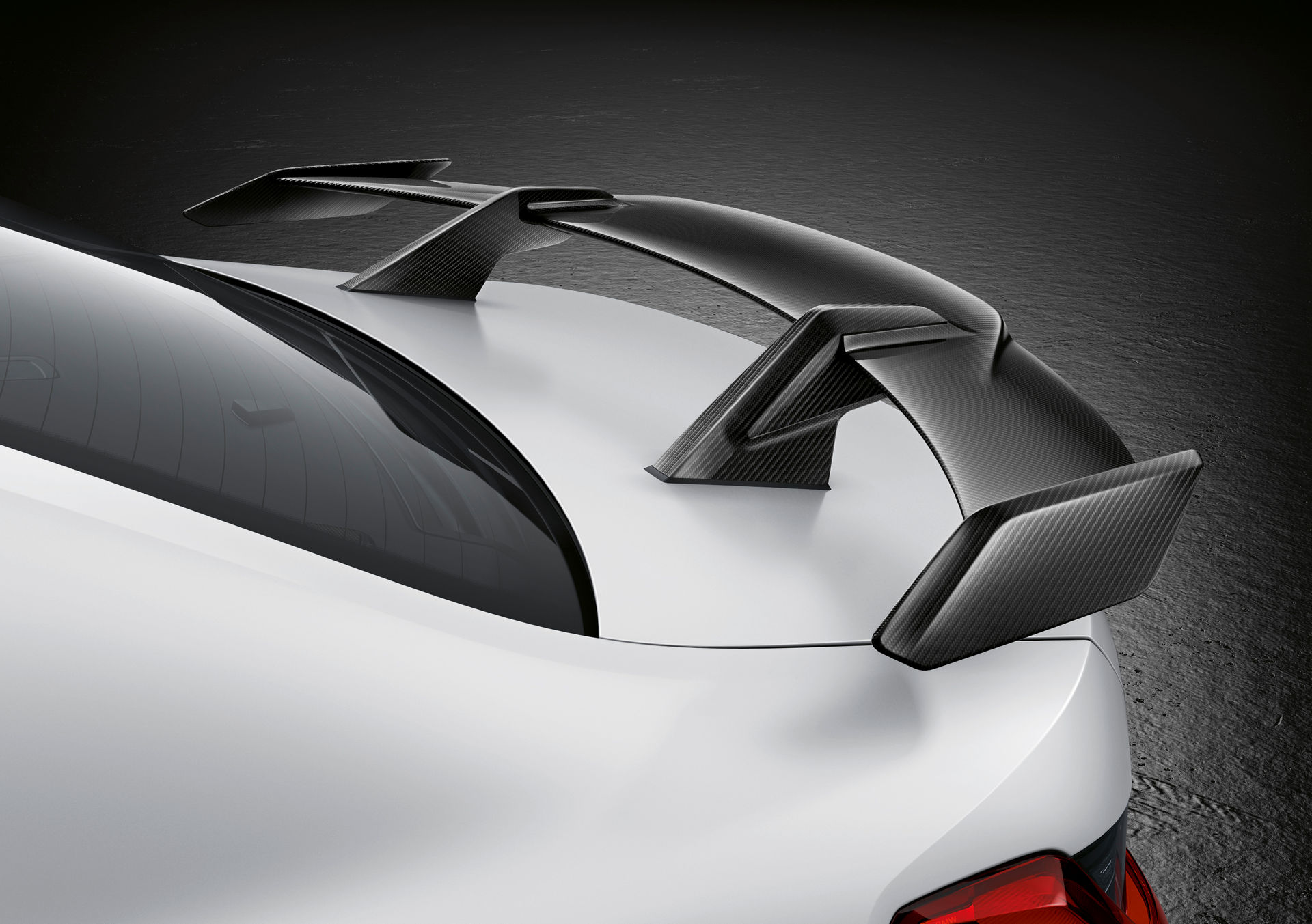 最後BMW也針對M3與M4推出19吋到21吋的鋁圈選擇,其中也包含鍛造打造的輕量化材質,顏色也有金色、黑色與鐵灰色等幾種款式。其它套件還有大型碳纖維後尾翼、碳陶瓷煞車系統、碳纖維定風翼、碳纖維側裙以及碳纖維格柵等。至於座艙內的M Performance套件當然包括一個M款性能方向盤、碳纖維排檔桿、獨特的車內地毯、門檻與各類碳纖維飾板等。