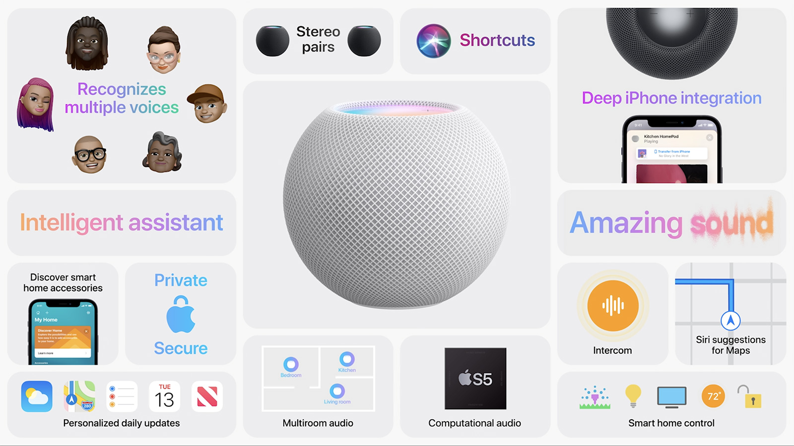 隨著近年智慧音箱逐漸走入生活,Apple雖然兩年前就推出HomePod智慧音箱,但無論價格、體積跟定位,都漸漸跟不上近年的親民、小巧跟方便的趨勢,HomePod其300美金的售價,更是讓Google、Amazon等市場對手搶占了百元美金區間的市場大餅,為了補足此區間,Apple也在今天發布了迷你版的HomePod mini,定價跟Google Nest Audio一樣都是99美金,預計將於今年底上市。