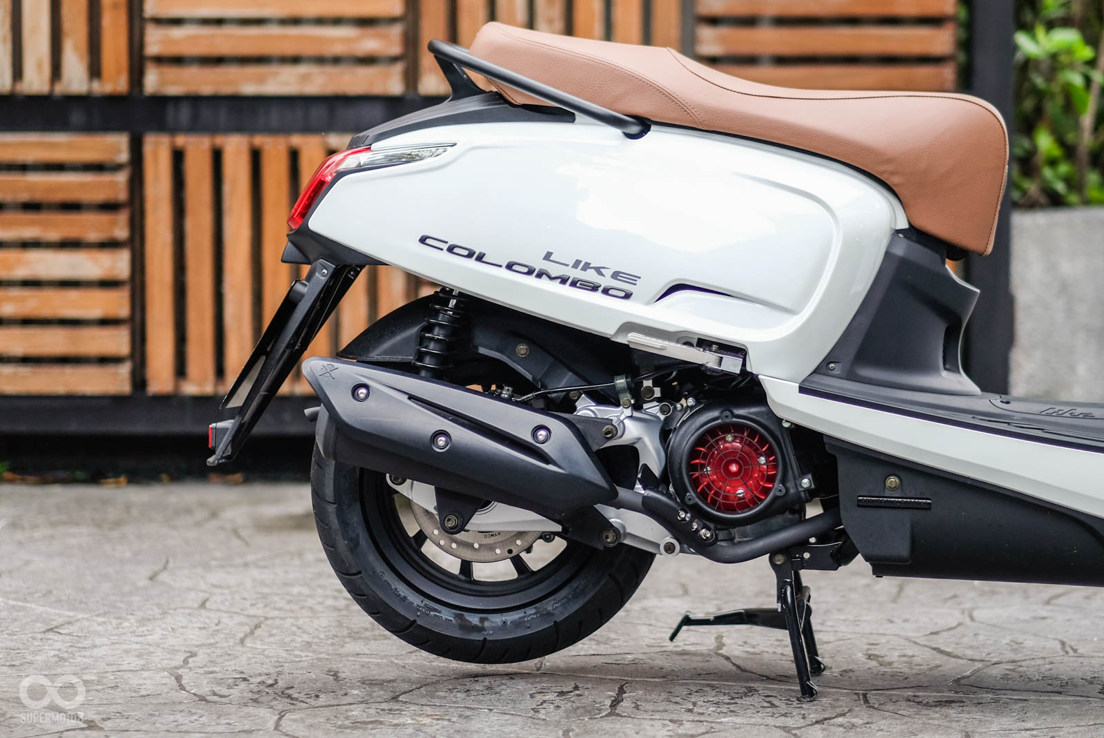 車尾改變幅度更為明顯,首先LIKE COLOMBO 150各車色皆搭載咖啡色坐墊,車側線條也捨棄歐系車款常用的半圓曲線設計,以較為方正的線條替代,尾燈加入LED導光條與上頭的黑色飾版點綴。全車尺寸也來到1,935/670/1,145(mm),可以看出LIKE COLOMBO 150比起其他歐風速克達,於外型上佔有優勢。