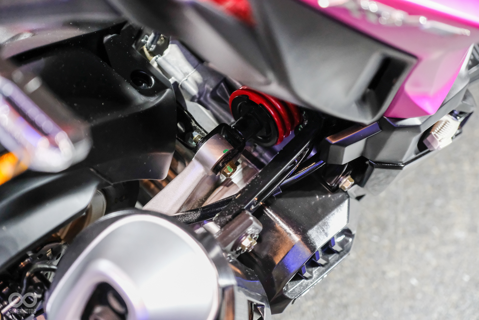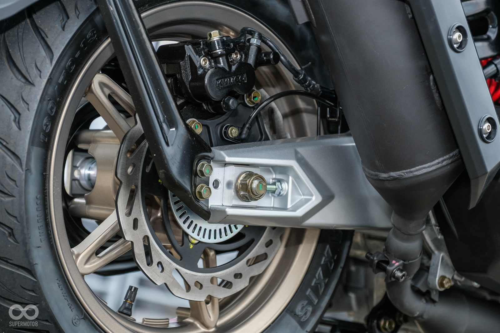 透過照片可以發現,受惠於這套系統,KRV擁有獨立式後搖臂,與打檔車的搖臂系統差異不大,而捨去傳動箱等設計,應該也有效降低簧下重量。以上動力系統搭配下,KYMCO KRV擁有16HP @ 7,500RPM馬力、15.68Nm @ 6,000RPM扭力。