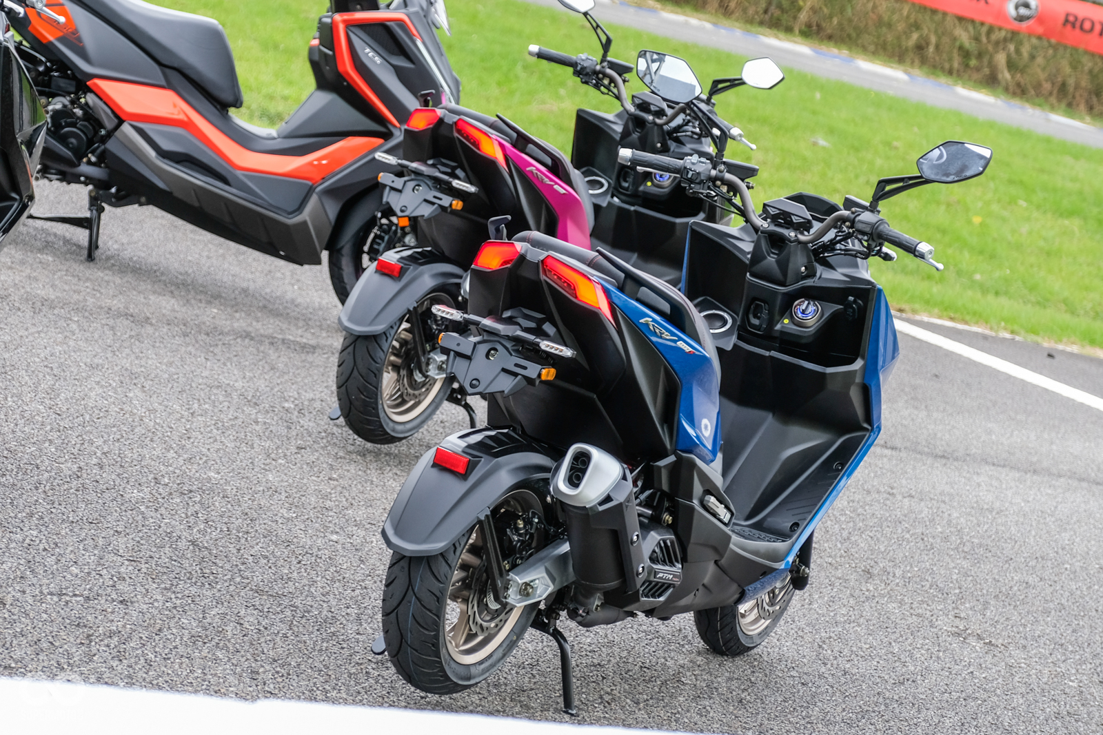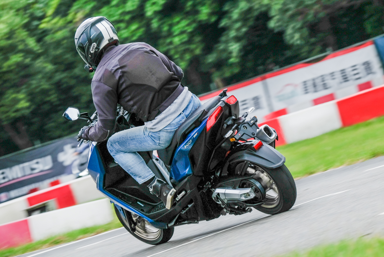 KYMCO KRV最神奇的點莫過於過彎感受,我們推測全新的傳動系統功不可沒,即便軸距來到1,400mm,但車輛傾倒丟入彎中毫不拖泥帶水,快速切入彎中、順暢出彎。並因為後輪沒有傳動箱設計,後輪動態更為清晰、靈活。另外這樣的設定因為後輪重量降低,對於懸吊調整應該會更簡單、效果更好。