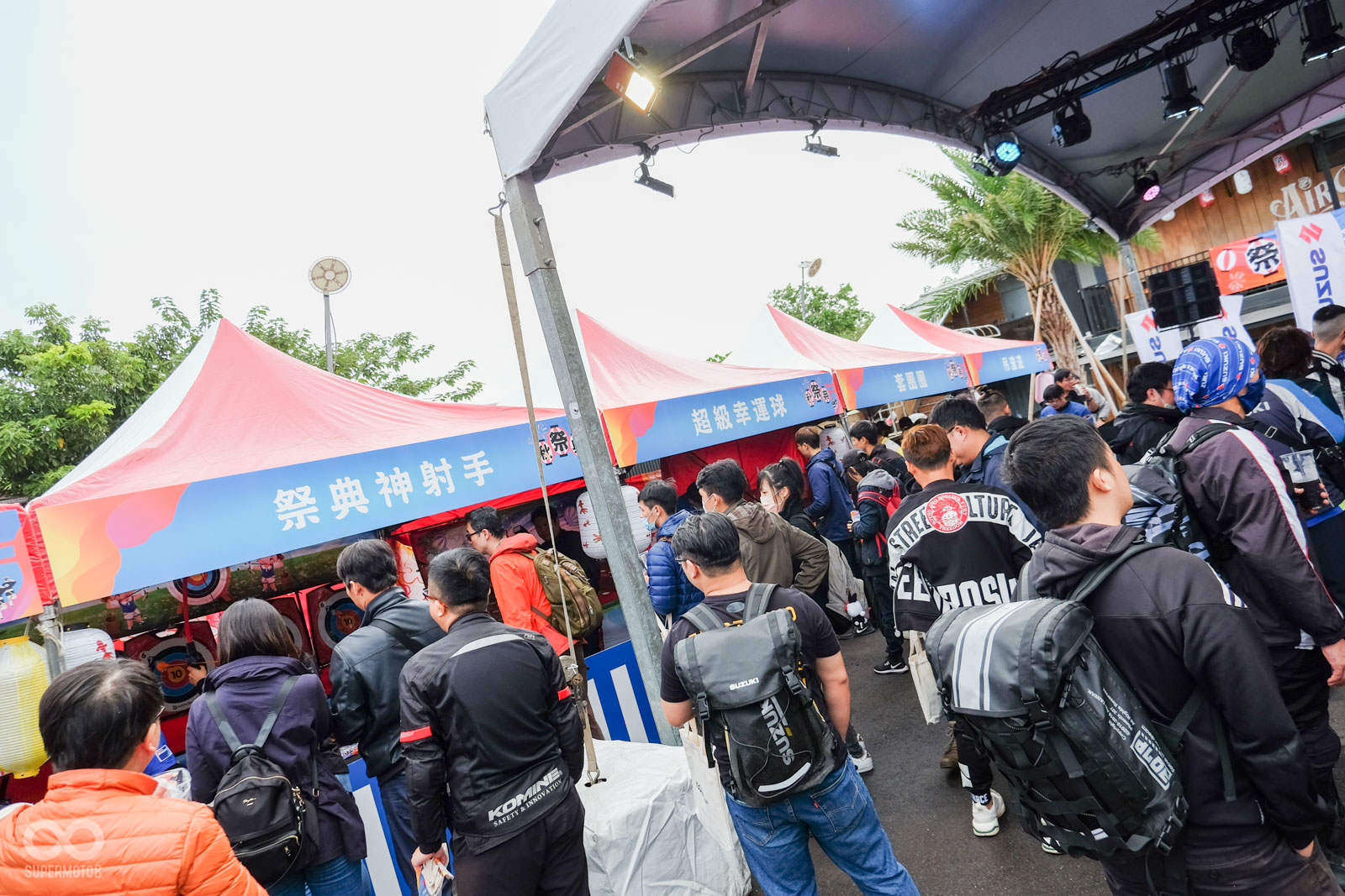 為了完美展現祭典風格,本次SUZUKI 秋の感謝祭場邊可以看到車主活動不可或缺的週邊廠商攤位,eReady電動車、Pirelli輪胎、行車記錄器、人身部品等攤位一應俱全,在舞台兩側則有美食、小遊戲區,可透過報名後即可享有的園遊卷進行遊玩,在玩樂、美食部分相當超值。