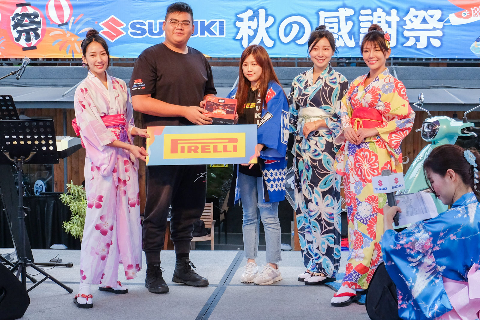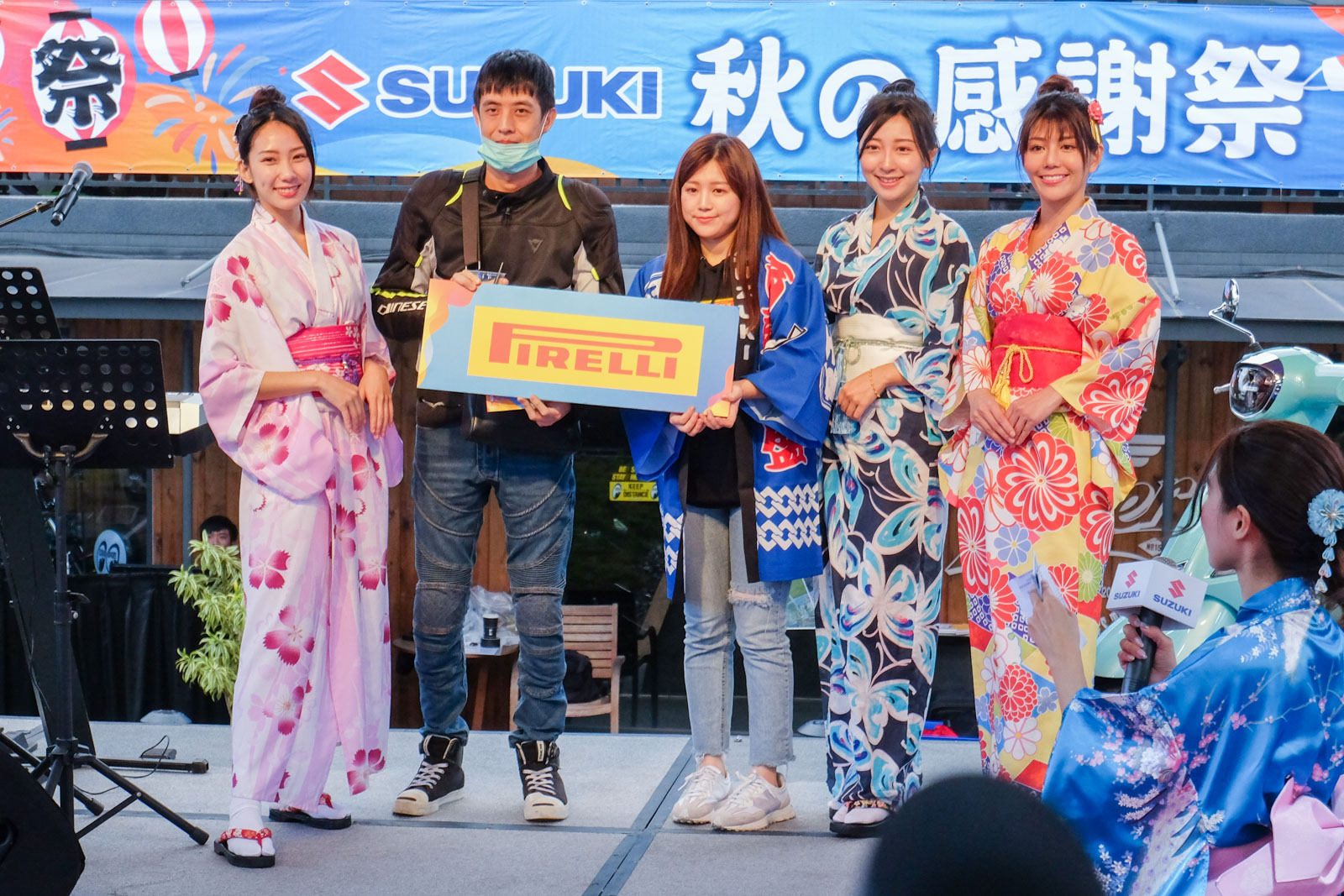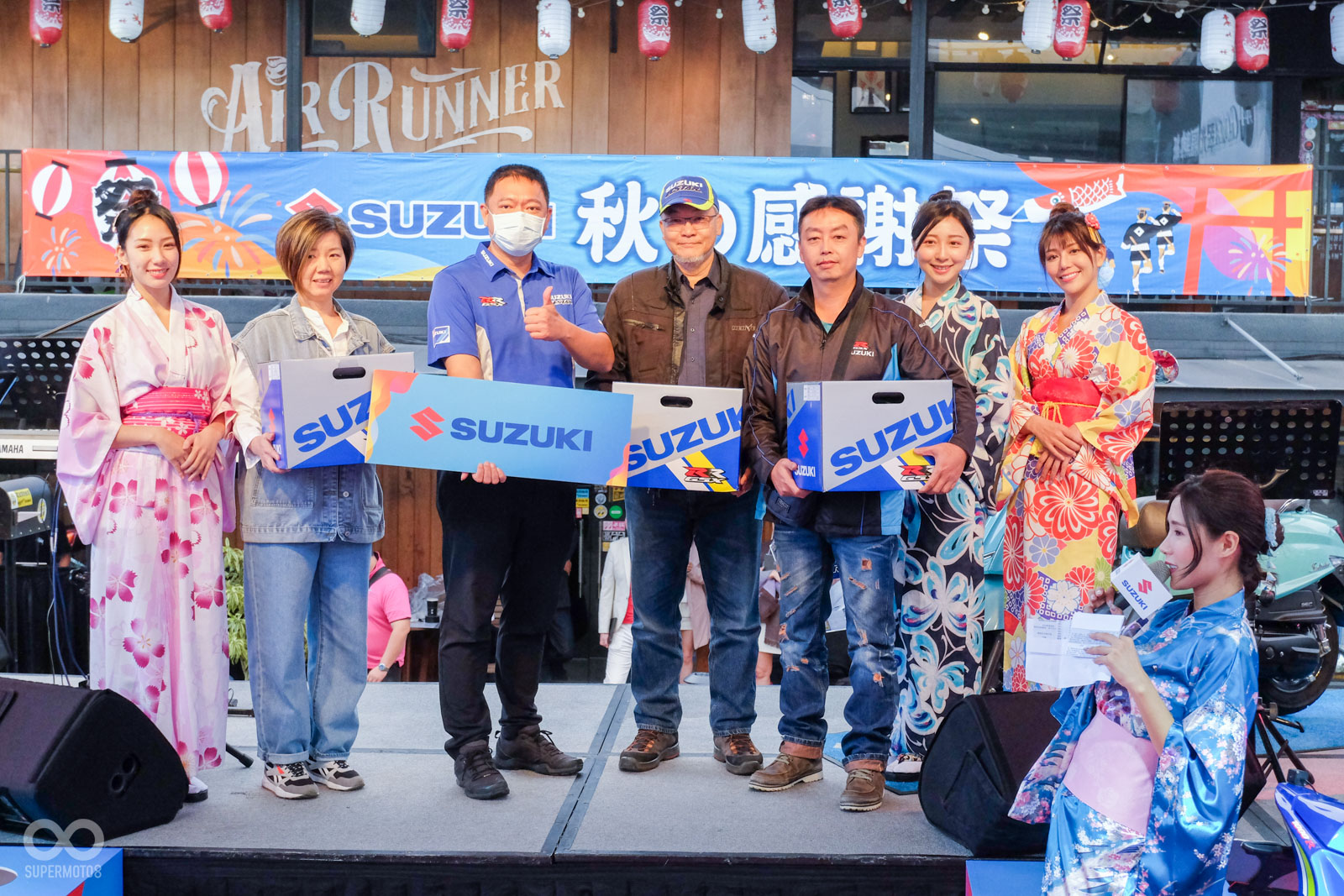 最後的抽獎環節更是精彩,各大贊助商也提供豐富產品摸彩,例如好運車業提供Pirelli輪胎、胎壓偵測器;SUZUKI官方則提供多件原廠服飾、大阿魯模型車等豐富獎品。