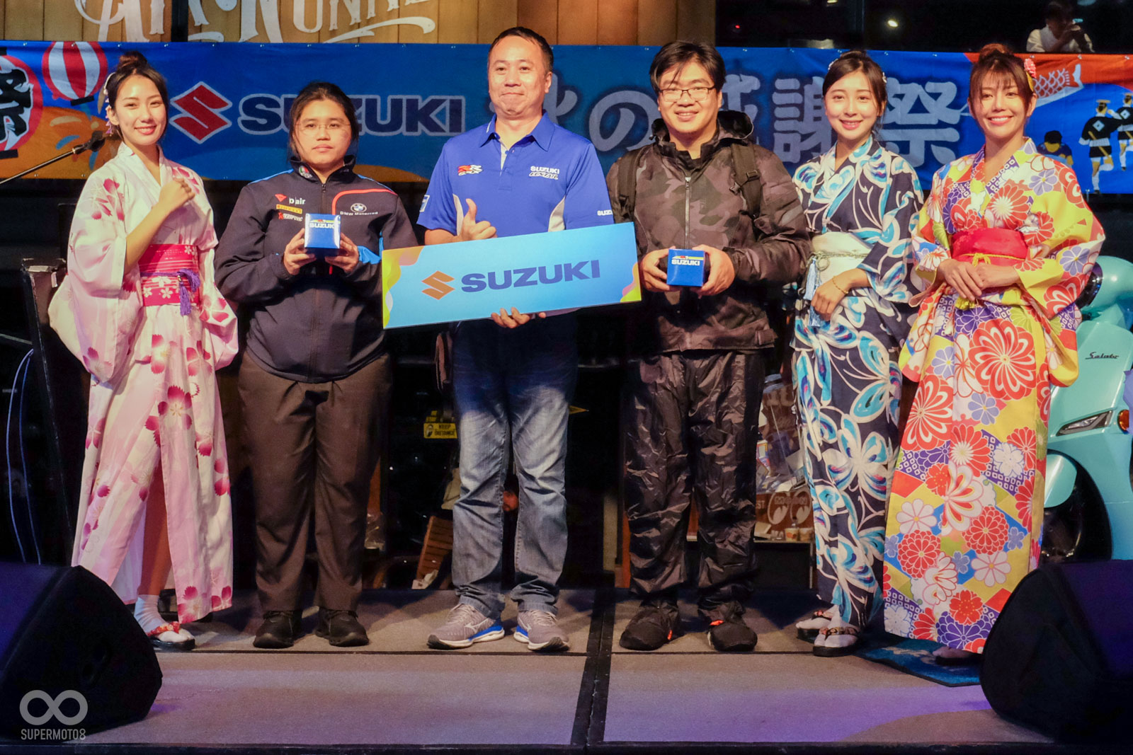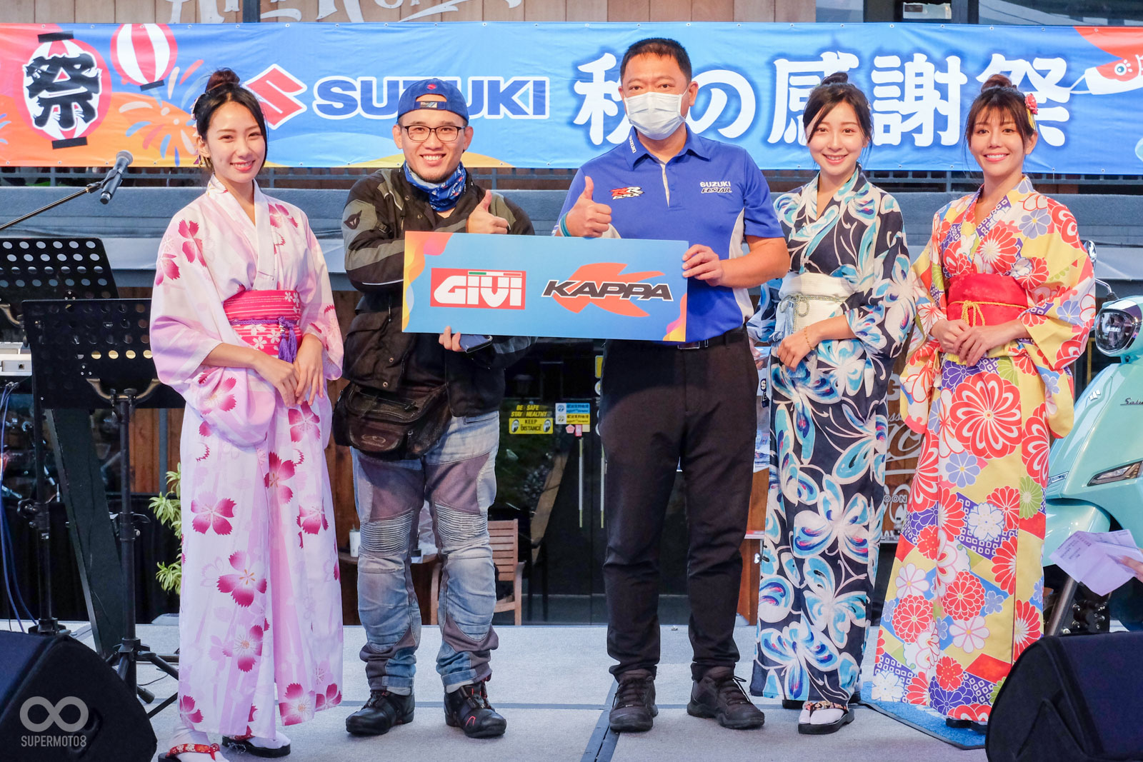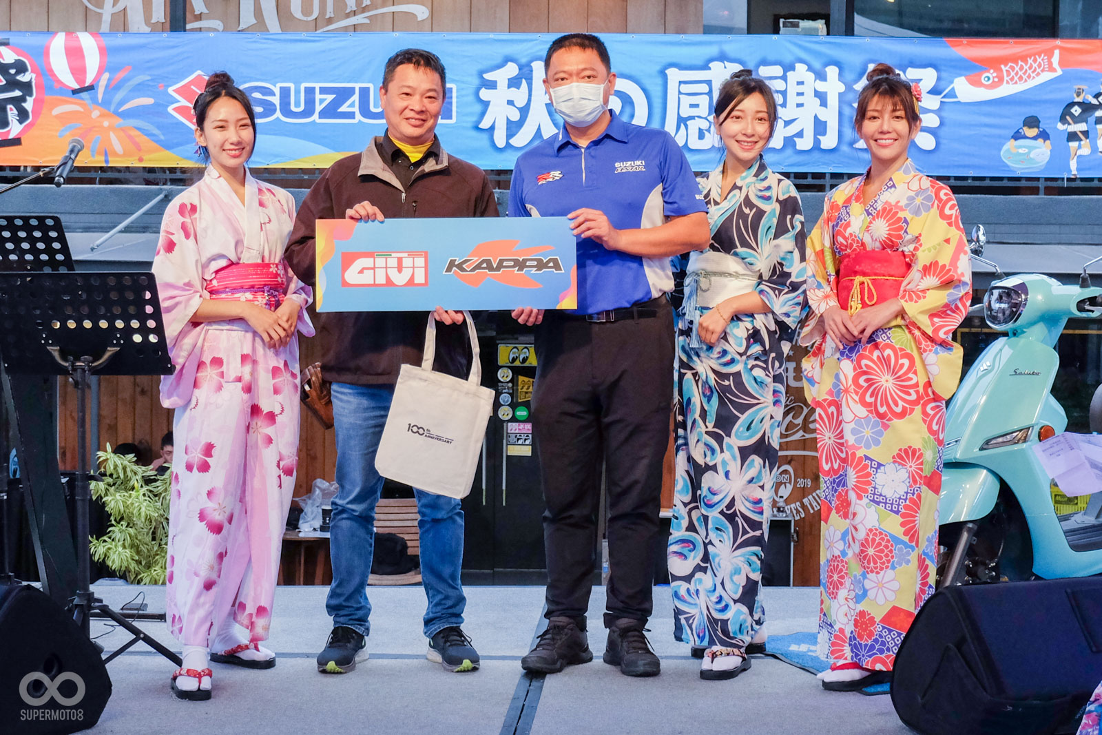 最後的抽獎環節更是精彩,各大贊助商也提供豐富產品摸彩,例如好運車業提供Pirelli輪胎、胎壓偵測器;SUZUKI官方則提供多件原廠服飾、大阿魯模型車等豐富獎品。