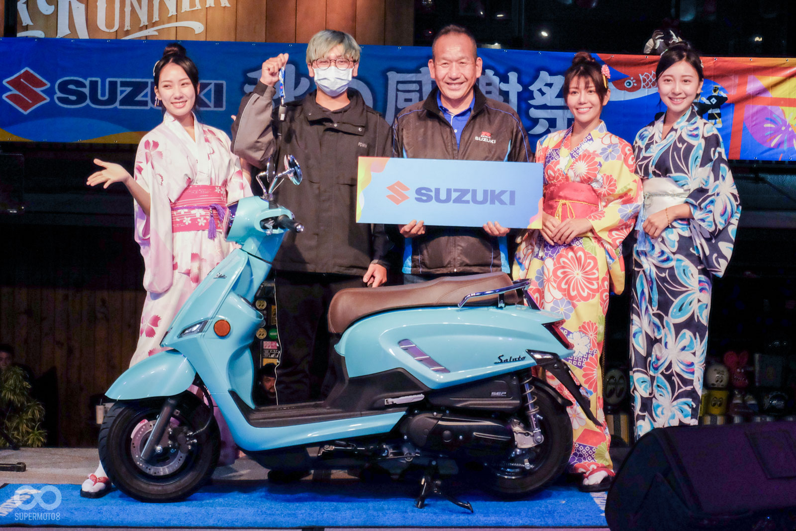 不過最後壓軸的可不是價值幾千元的小禮品,而是直接抽出SUZUKI Saluto 125一台,這台歐風速克達委由義大利設計師設計,並配有Keyless系統提升便利性,得獎者開心的在台上表示:『這台車要給女朋友騎』!