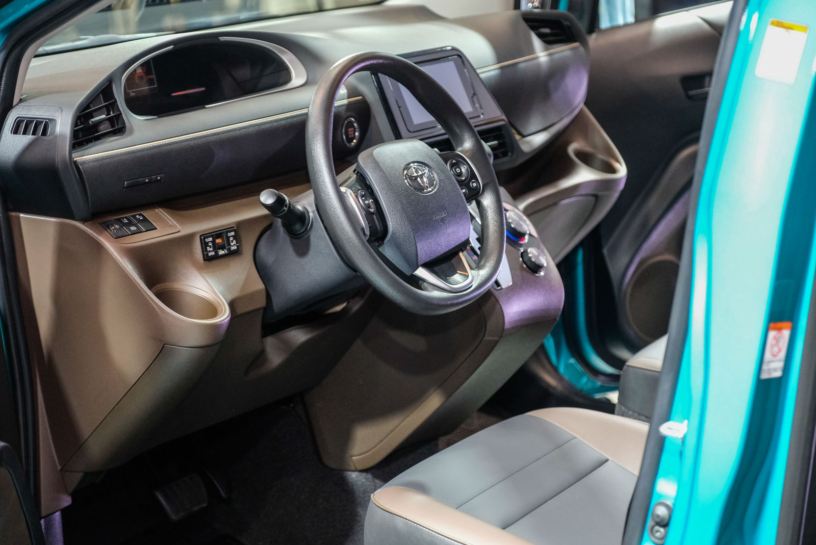 TOYOTA SIENTA CROSSOVER擁有特殊的車款定位,所以懸吊系統也增高20mm,並且針對前後避震阻尼都做出重新調整;車內導入雙色質感內裝,雖然維持相同的佈局架構,但讓車內質感有感提升;駕駛座旁也可以看到TSS系統控制開關。