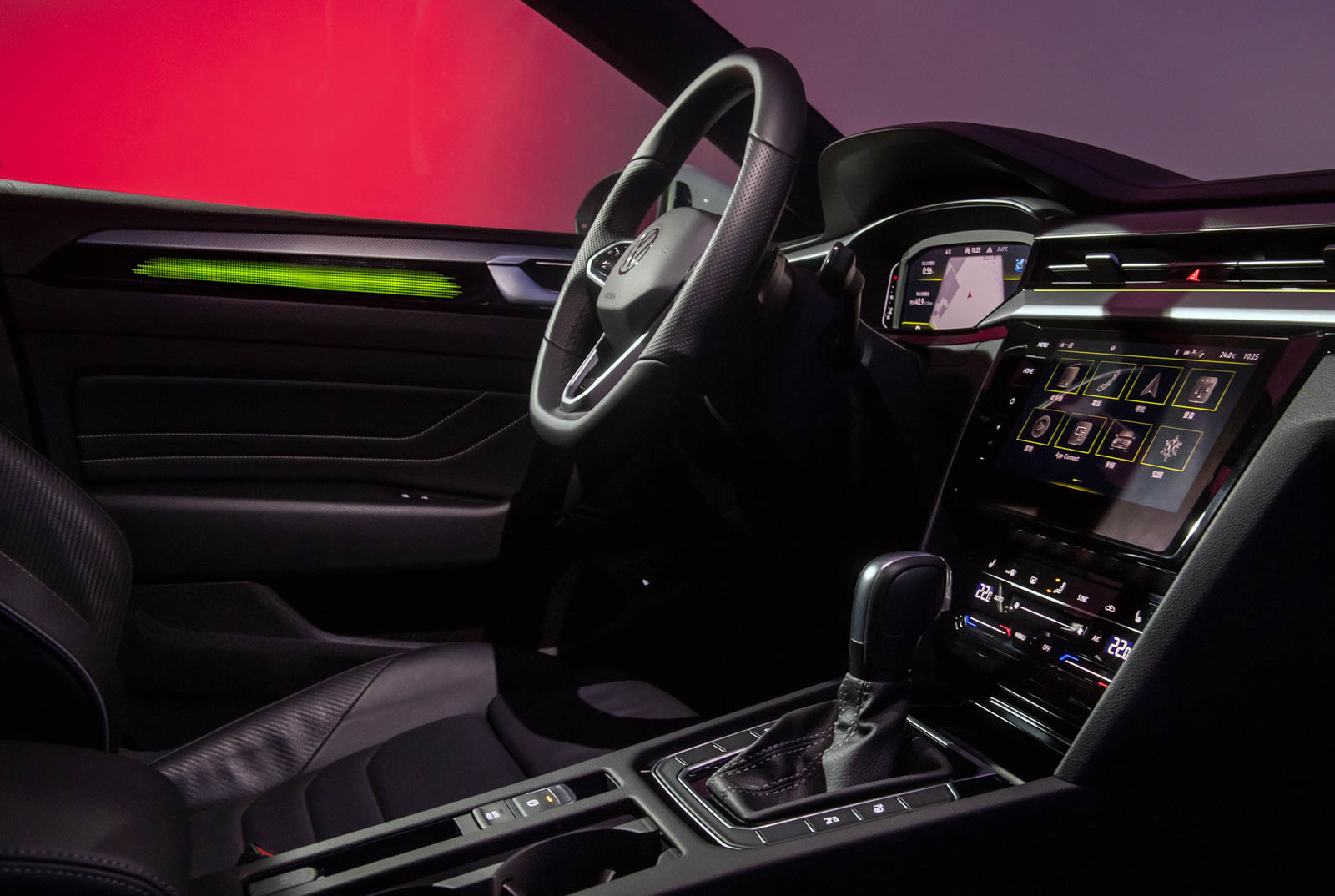 台灣福斯汽車為 The Arteon Fastback 與 The Arteon Shooting Brake 規劃各四款和三款販售車型,本次實車現身的是強烈跑格化氣息的330 TSI R-Line車型,車室除了可看到冰鋒凜冽的 Silver Rise 鋁質飾板,搭配 Nappa 真皮豪華舒適座椅、大面積電動玻璃天 窗及可變換 30 色的車室氛圍燈,更加上最大 20 吋的造型鋁圈,給予 The Arteon 內外兼具的跑格化視覺享受。