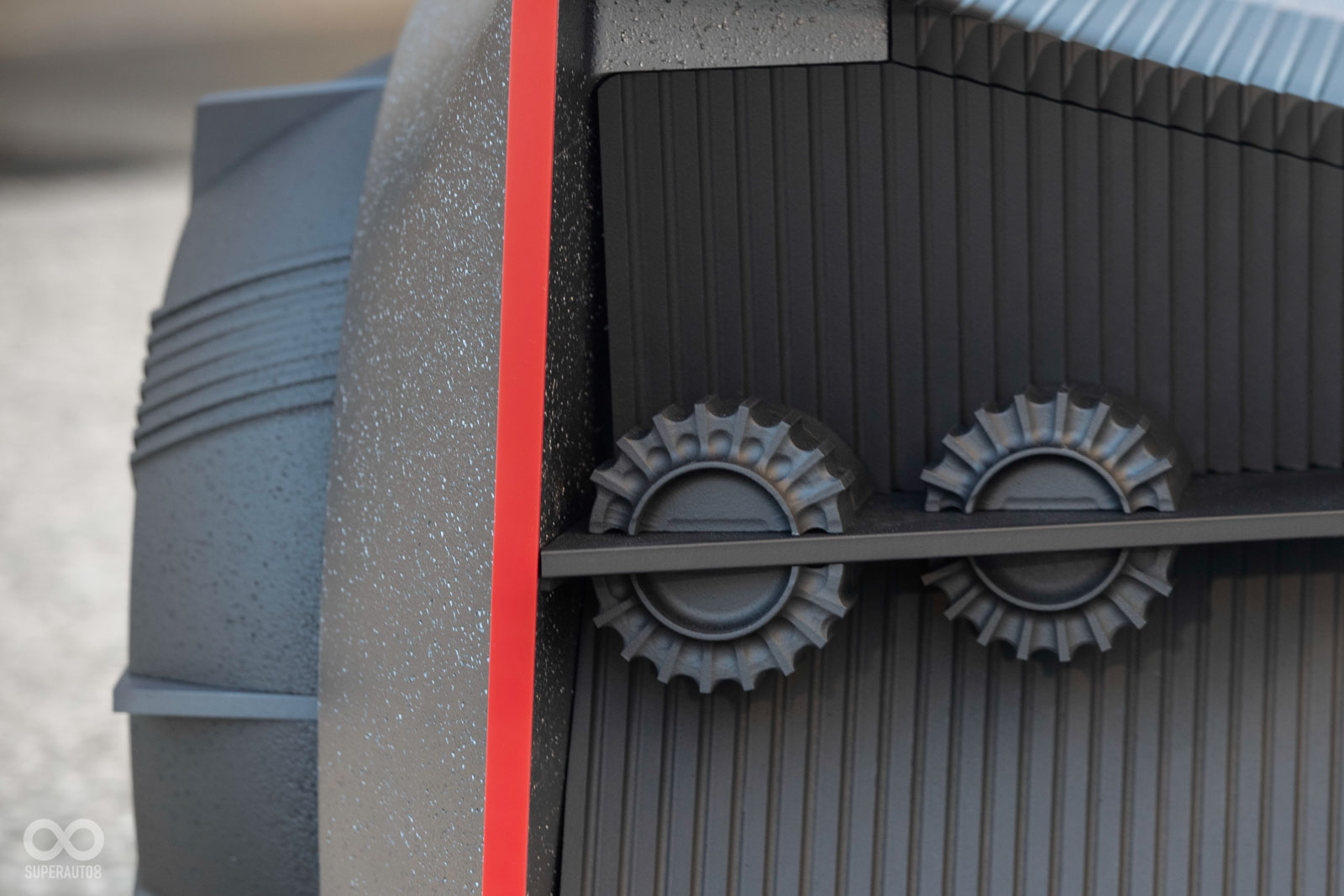 即便擁有相當前衛的座位設計,但GT-R(X) 2050依舊擁有許多現代車款的功能,例如可變角度的導流片可增加下壓力,還有經典的GT-R四圓尾燈、V-motion設計語彙;眼尖的朋友可能會注意到這台車的輪胎相當特別,因為他被設計為可供360度轉向使用,上頭的橫幅還有散熱效果。