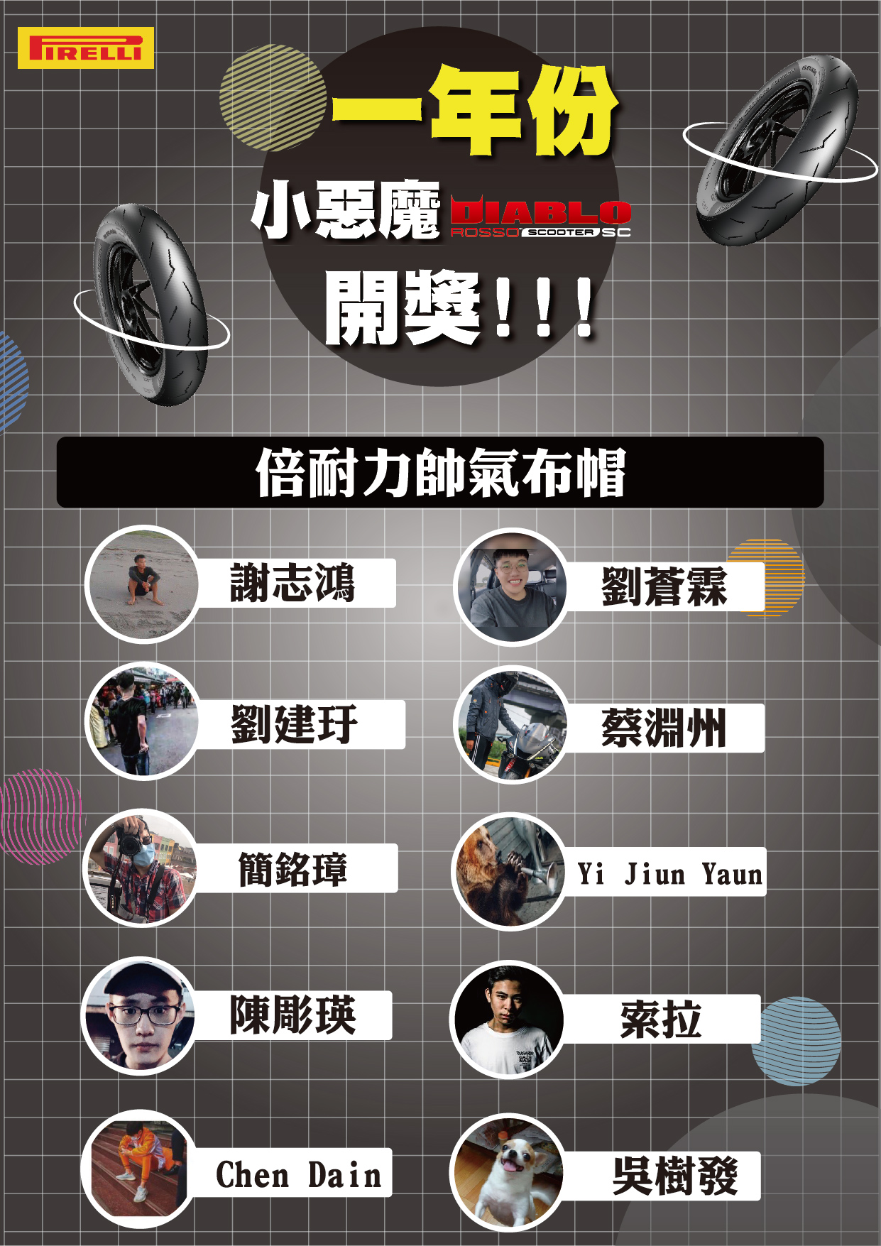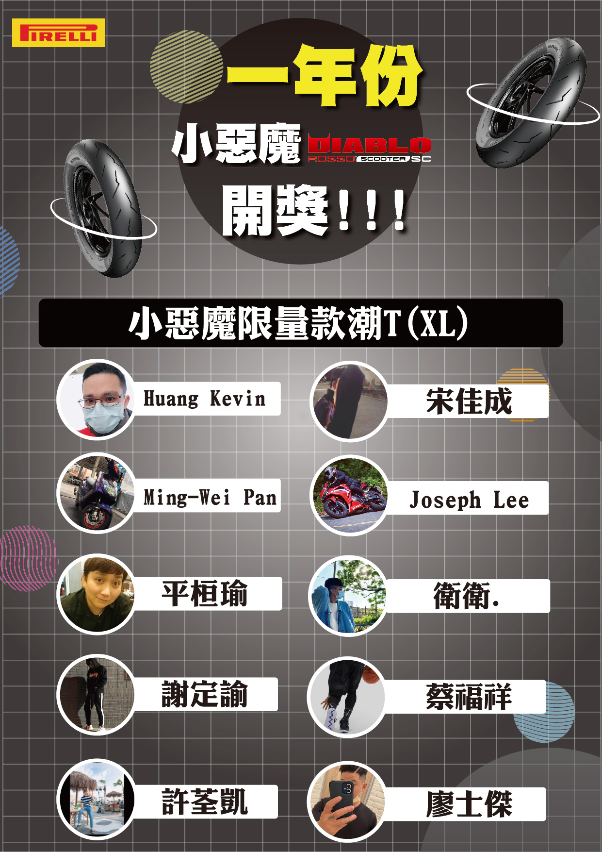 再次恭喜參加本次活動幸運中獎的朋友,也請一起期待未來將規劃更精彩豐富的活動,回應廣大喜愛倍耐力消費者的支持!
