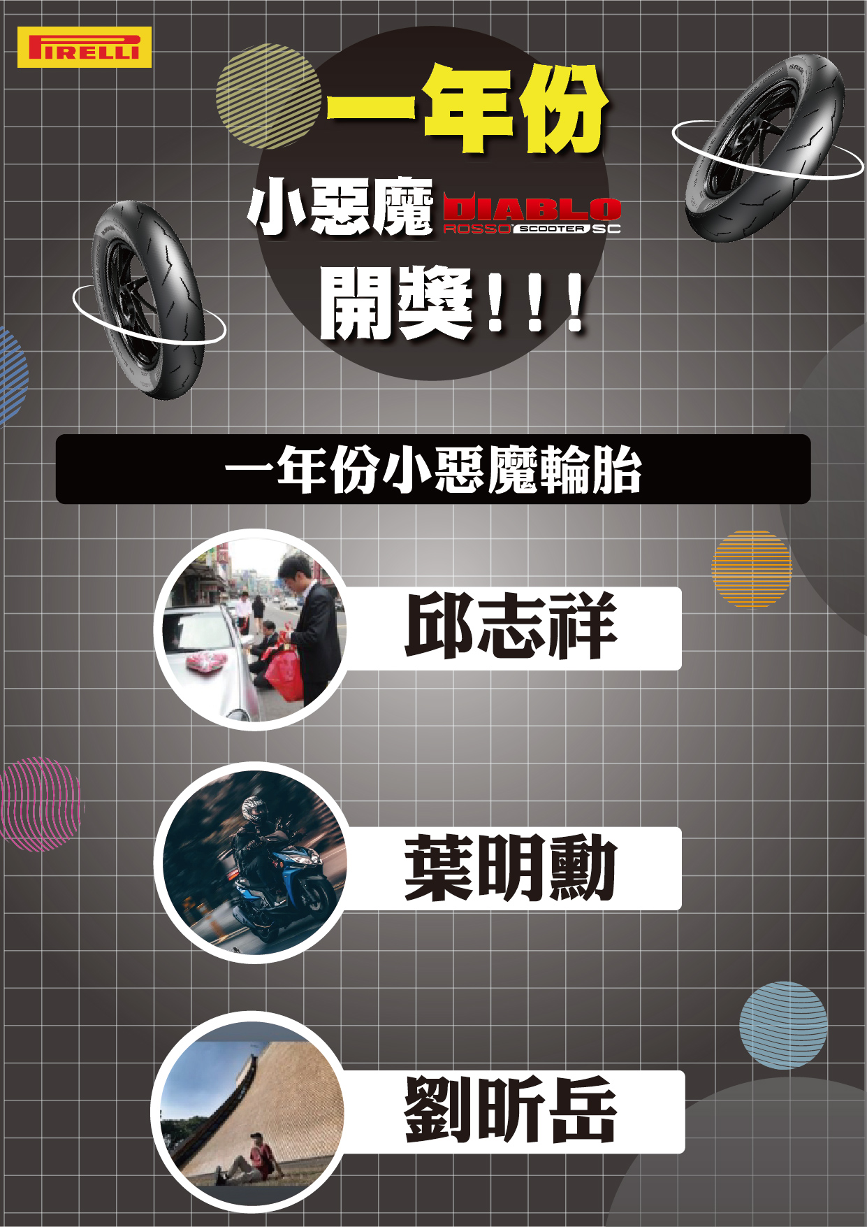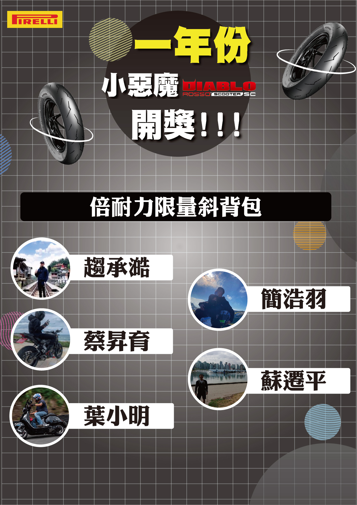 倍耐力摩托車輪胎總代理 好運車業,為回饋消費者對DIABLO ROSSO™ SCOOTER SC(小惡魔)的熱烈支持,自2020年11月1日至2021年1月31日,推出【一年份小惡魔任你騎】優惠活動。此次國內市場首見的消費者回饋活動,一推出就在消費者間引起討論與熱列回響,在首波倍耐力DIABLO ROSSO™ SCOOTER SC(小惡魔)一年份中獎者出爐後,活動熱度更再次達到全新熱潮,參與活動的消費者更以踴躍的實際行動期待能成為大獎得主。