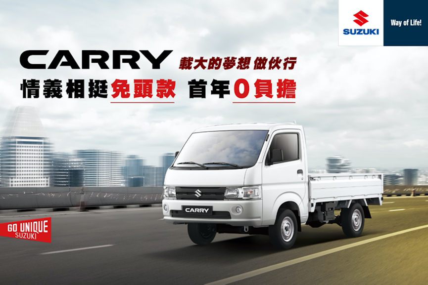 全新世代CARRY以超越同級的超大載重、節能油耗及靈活操控等堅強實力,獲得全台年輕創業頭家們的肯定。TAIWAN SUZUKI推出史無前例的超激優惠,入主CARRY不僅購車免頭款,更享等值首年月付額的萬元大紅包,獲得頭家們的熱烈迴響,本月優惠不間斷,力挺全民拼經濟,讓更多頭家輕鬆做生意。