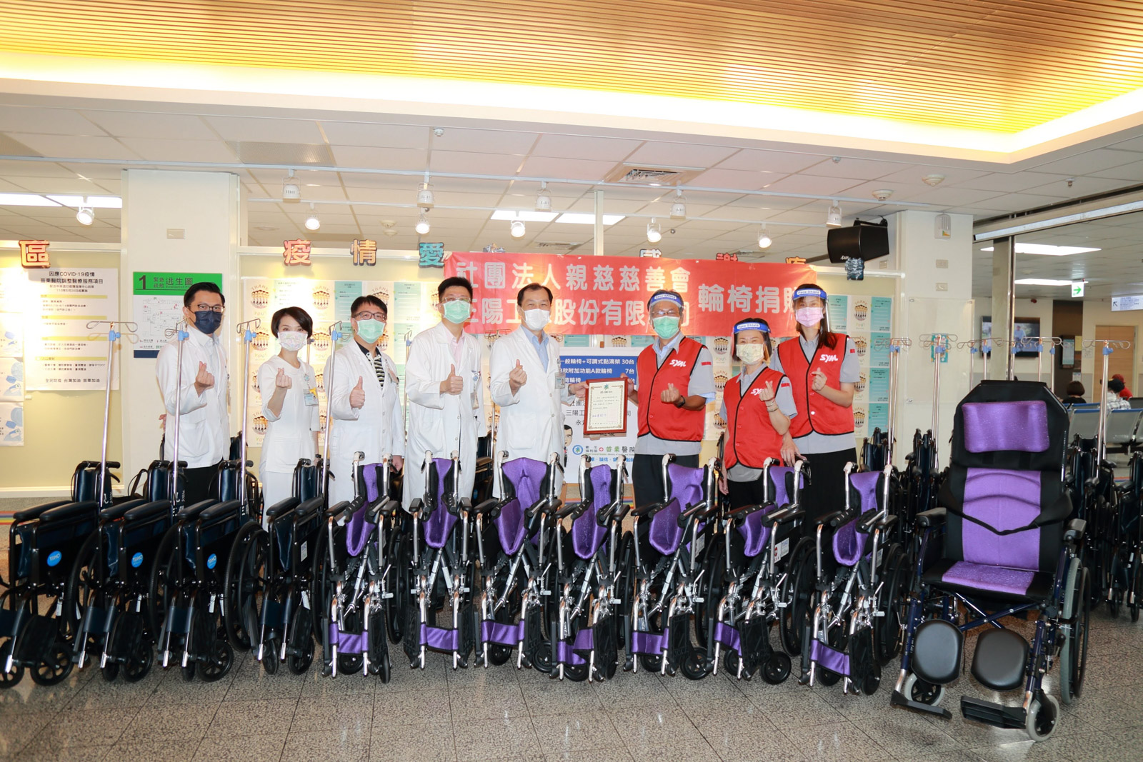 三陽工業董事長吳清源說,目前仍處於新冠肺炎三級警戒期,必需減少人與人的接觸,民眾對於進入醫療院所及借用輪椅備感壓力,若是有完整消毒的全新輪椅可以使用,就能讓民眾更安心。因此,三陽工業與善心團體共同捐贈附可調式點滴架輪椅三十台、B款附加A款型輪椅七台與高背躺式輪椅一台予部苗醫院,由李明輝院長親自代表受贈,並致贈感謝狀。