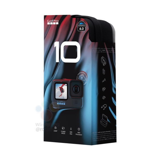 在下一代的外型上並沒有改變太多,基本上與Hero9的設計沒有太大區別,意味著相關的配件都可以保留使用,不過在正面的GoPro以及側邊上的「10」將會採用淺藍色的字體,讓機身上面的色彩更加活潑,同時正面以及背面的雙螢幕系統也予以保留,但內部的GP2處理器將會提升影片的幀率,預計將會支援5.3k@60fps,在4k影片的狀態下會擁有120fps的表現,如果降到2.7k則可以有240fps的慢動作畫面可以使用。