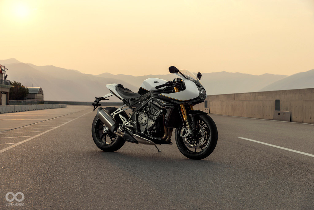 但說到配備升級部分可是令人有些失望,幾乎僅在配備、姿勢上進行調整,首先手把改為分離把設計,位置較SPEED TRIPLE 1200 RS降低135mm、向前50mm;腳踏位置也依據830mm車高進行最佳化調整,呈現出熱血至上的騎乘姿勢。輪胎採用Pirelli大閃電V3直接攻頂。