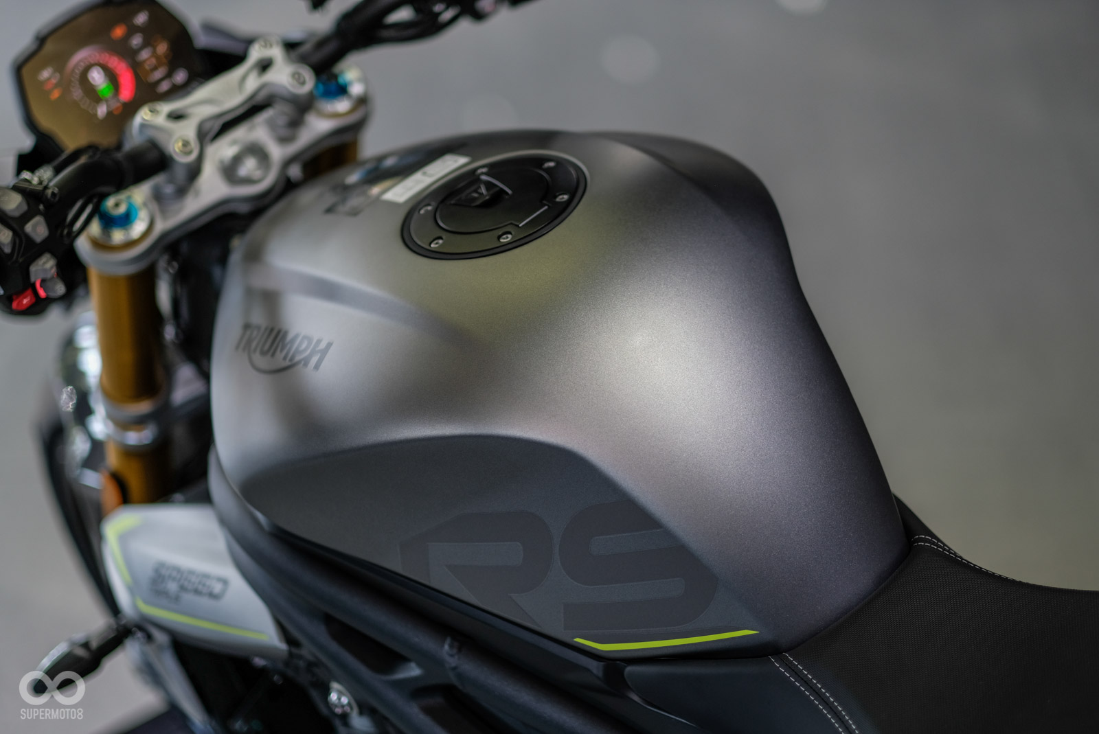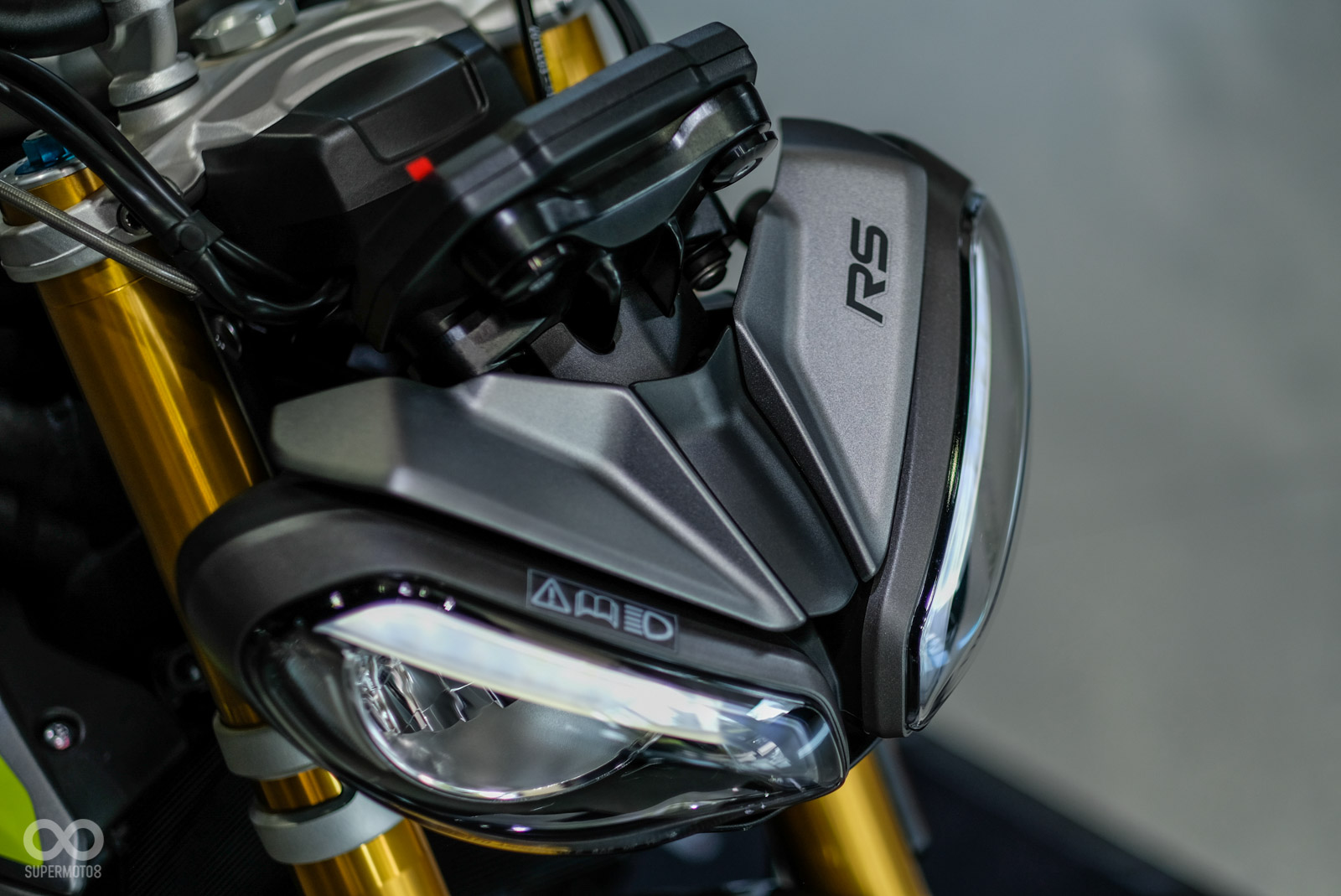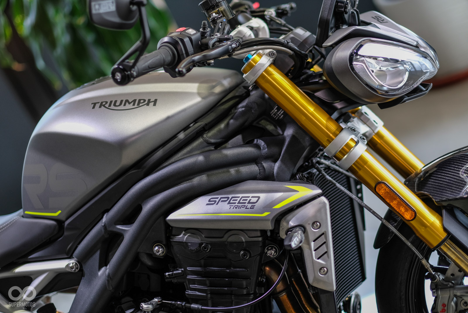 電控、配備部分,SPEED TRIPLE 1200 RS換裝5吋TFT液晶儀表,加入TRIUMPH多媒體連線功能;電控維持和先前同樣的規格,有5種騎乘模式、循跡控制、彎道ABS、定速巡航、進退快排、KEYLESS免鑰匙等功能。