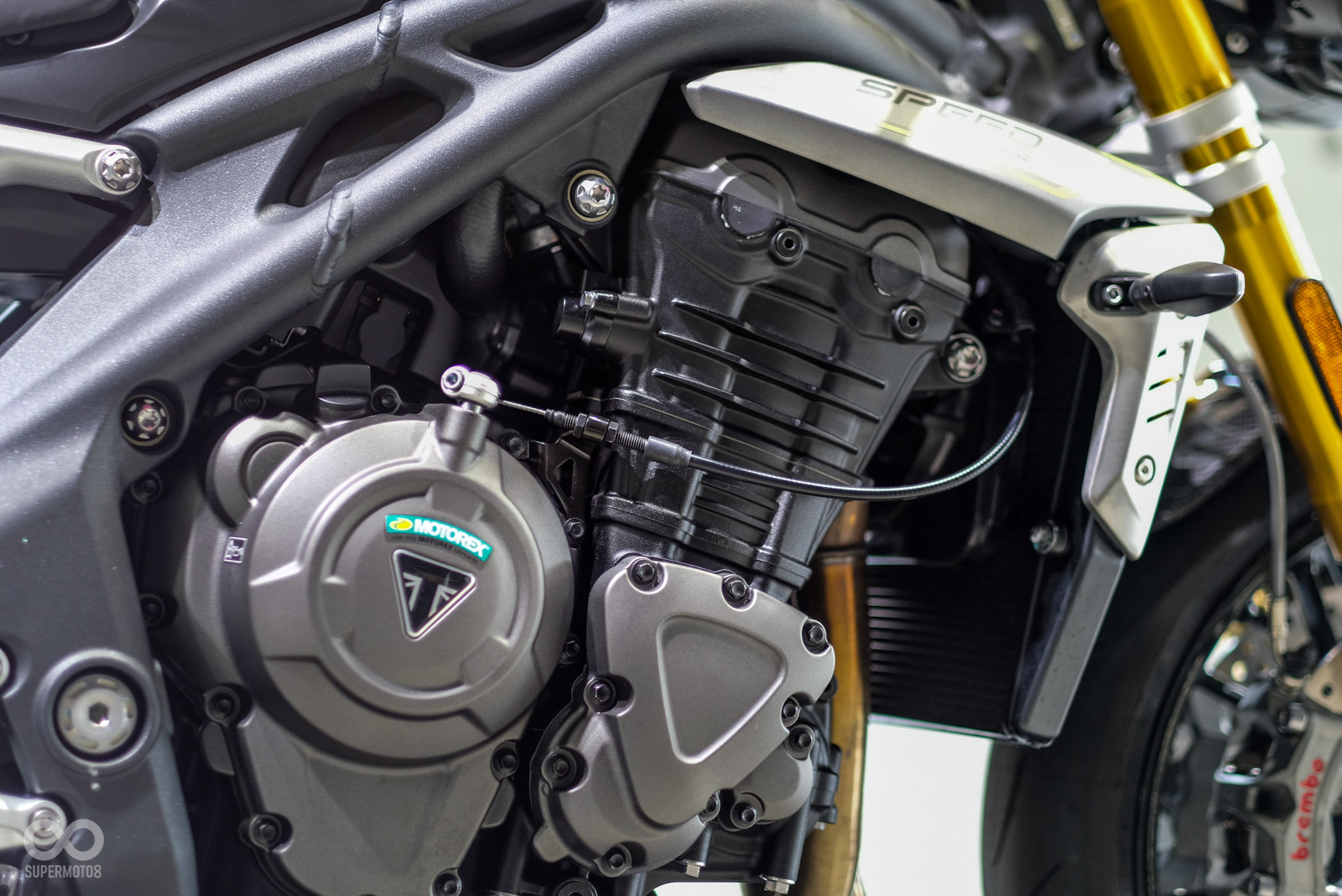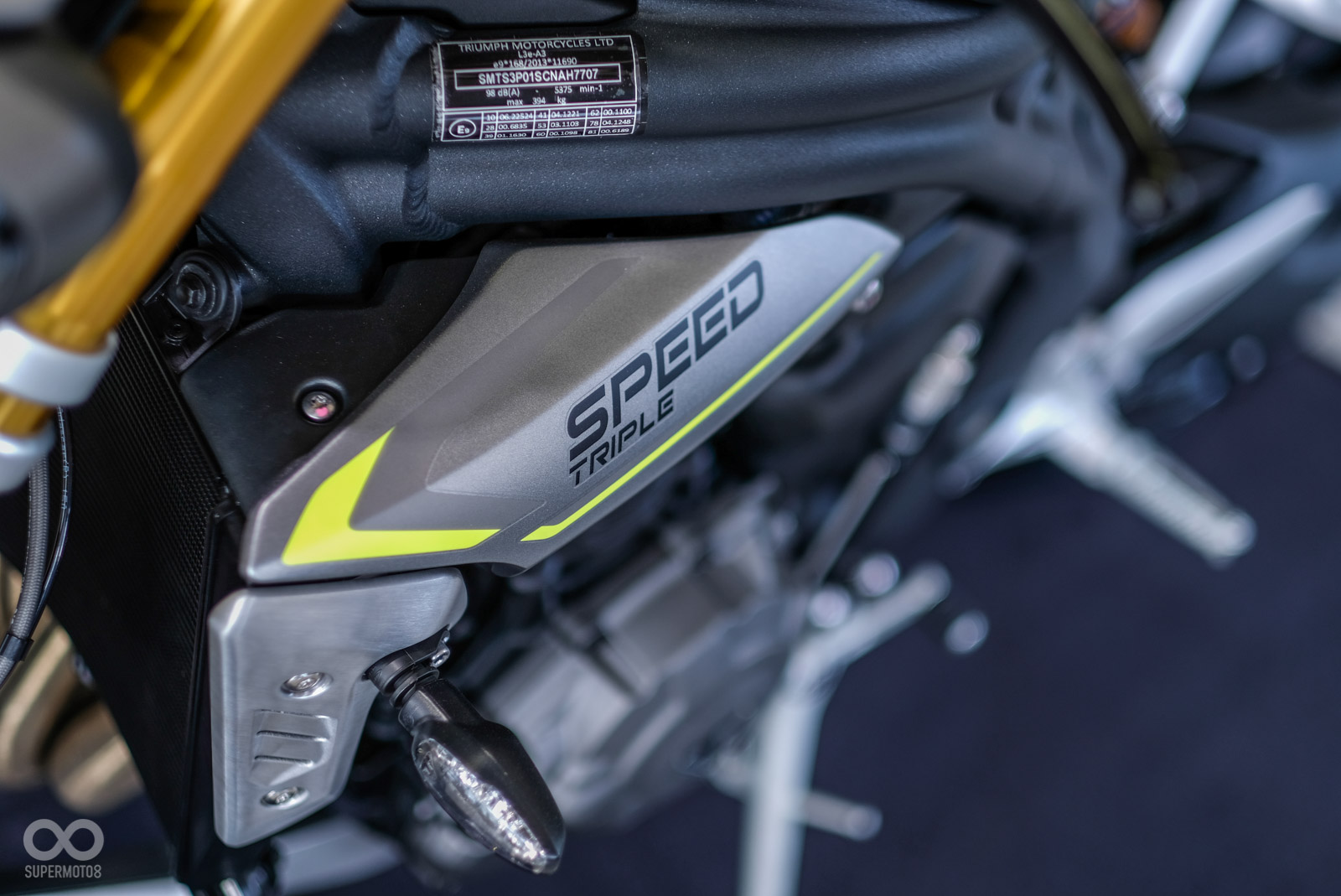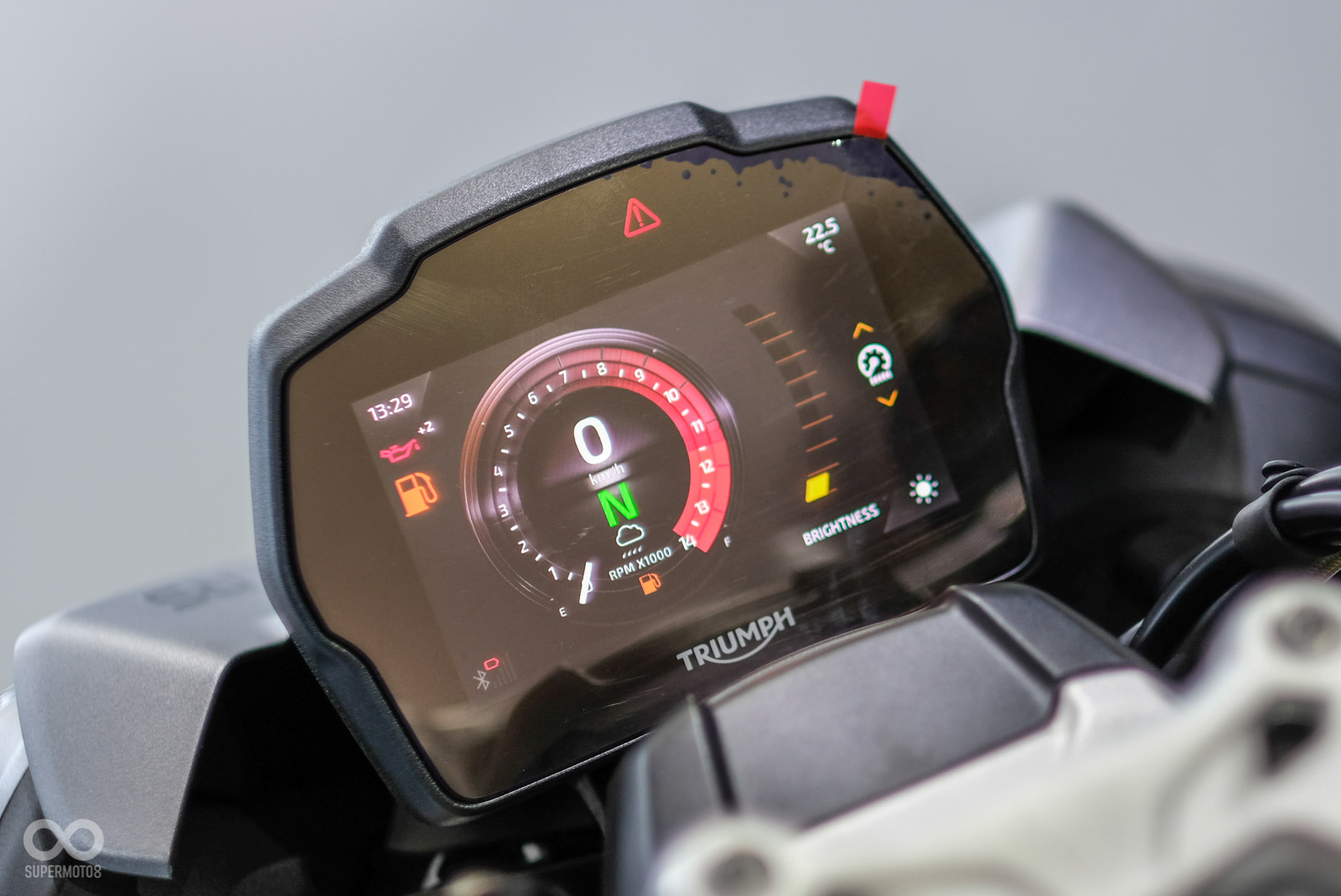 電控、配備部分,SPEED TRIPLE 1200 RS換裝5吋TFT液晶儀表,加入TRIUMPH多媒體連線功能;電控維持和先前同樣的規格,有5種騎乘模式、循跡控制、彎道ABS、定速巡航、進退快排、KEYLESS免鑰匙等功能。