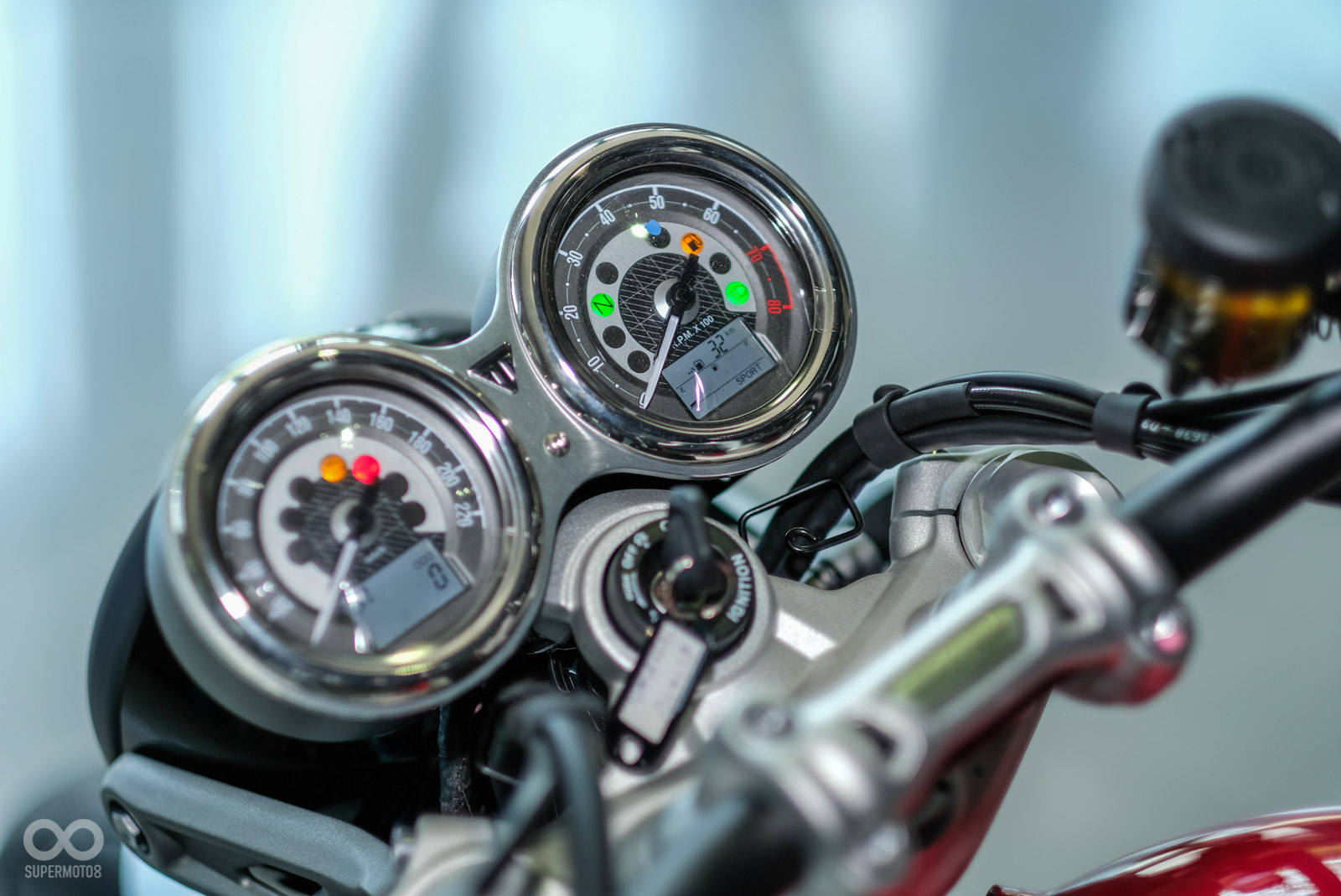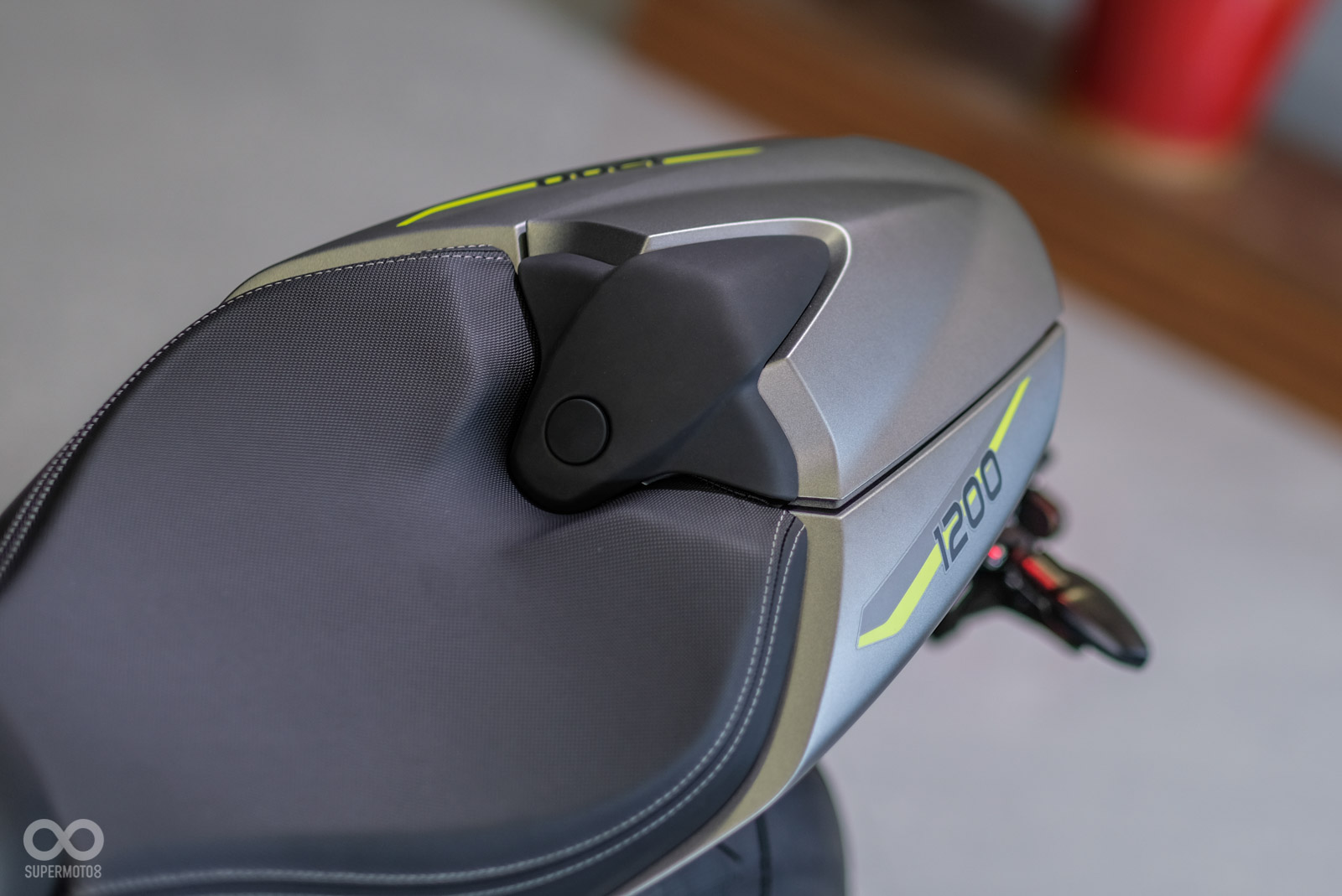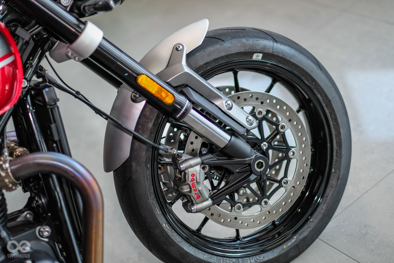 此外,前叉升級為Marzocchi 43mm倒立式前叉、後懸吊為預載可調的雙槍後避震;前煞車升級Brembo M50對向四活塞卡鉗配330MM雙碟、後煞車為Nissin雙活塞卡鉗配220mm單碟;車輛座高為809MM,裝備重量為216公斤。