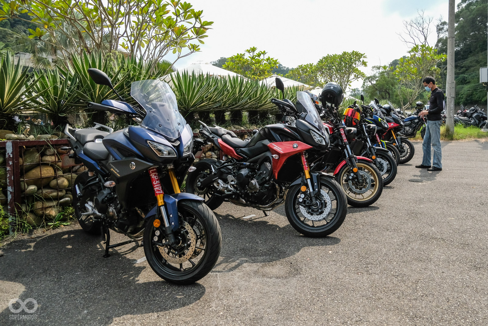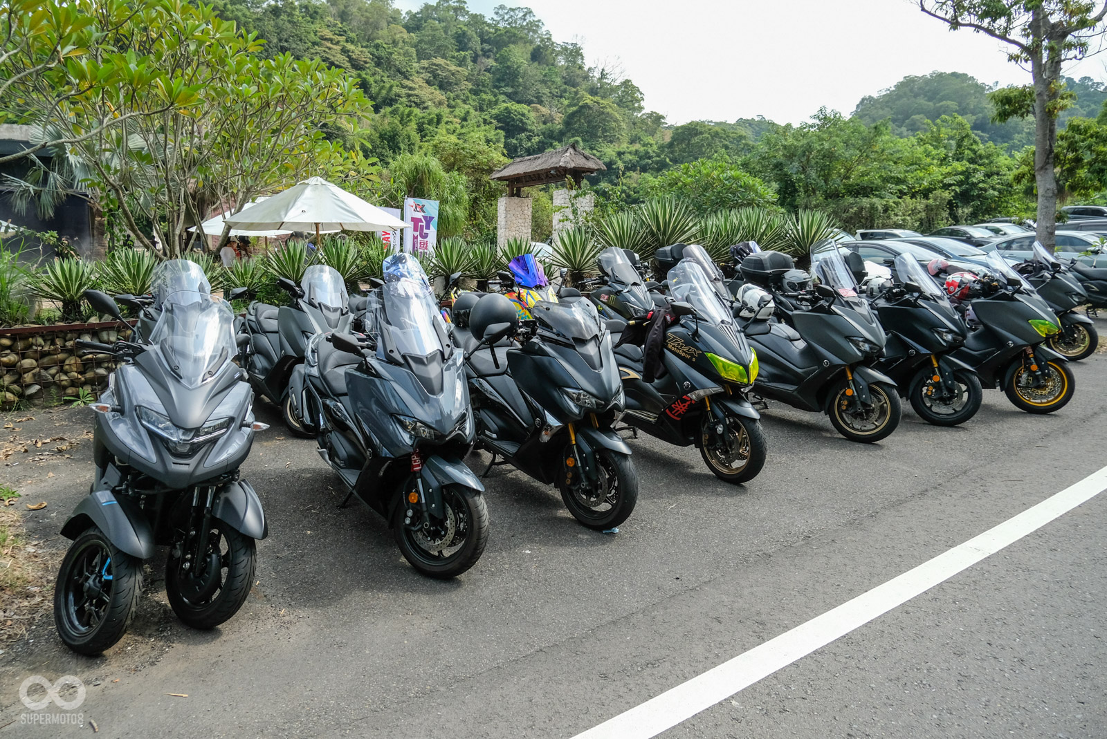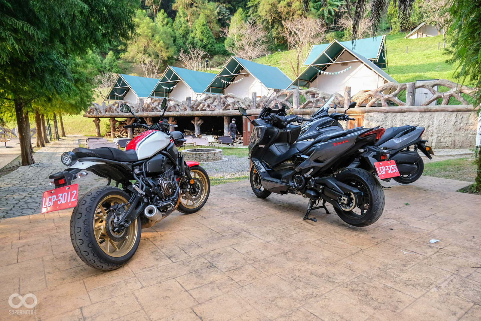 此時在莫內咖啡門口,可以看到大量的TMAX、TRACER 900 GT、 XSR700車主到場集結參與,許多車主也都是攜帶後座、全家一同參與這次闔家歡樂的露營體驗。