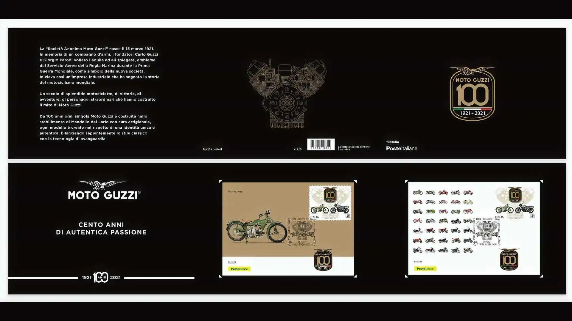 創立於1921年的義大利老牌摩托車製造商Moto Guzzi於今年適逢100週年,除了Moto Guzzi自己推出V100 Mandello、100週年紀念冊以此慶祝,意大利郵政當局 Poste Italiane 也特別發行紀念郵票,以慶祝Moto Guzzi的不凡成就。