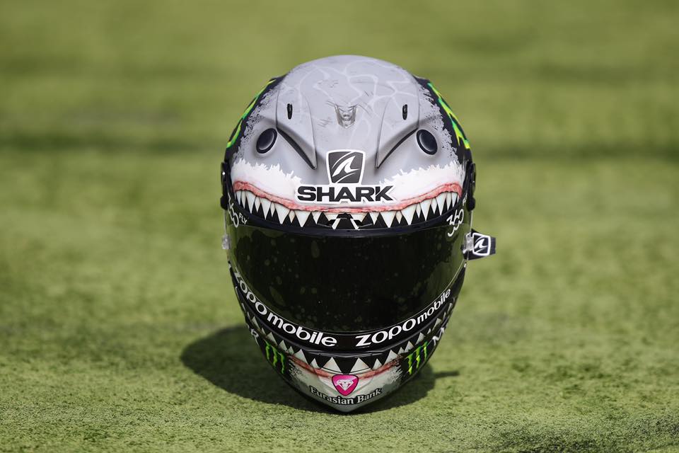 還記得去年Rossi的那頂被鯊魚追殺的可愛彩繪嗎?當時積分領先的Rossi反應著被後方車手追擊的心境,而這次在義大利主場被噓的相當慘烈的Lorenzo,同時在積分上又落後自己隊友Rossi 18分,在隔站回到自己主場,推出此款彩繪,似乎有種強烈的復仇態勢(既然Rossi覺得我是鯊魚,我就成為一條凶殘的大白鯊吧~),而同時也順勢呼應了代言品牌SHARK之名,可說是兩全其美的絕妙彩繪。