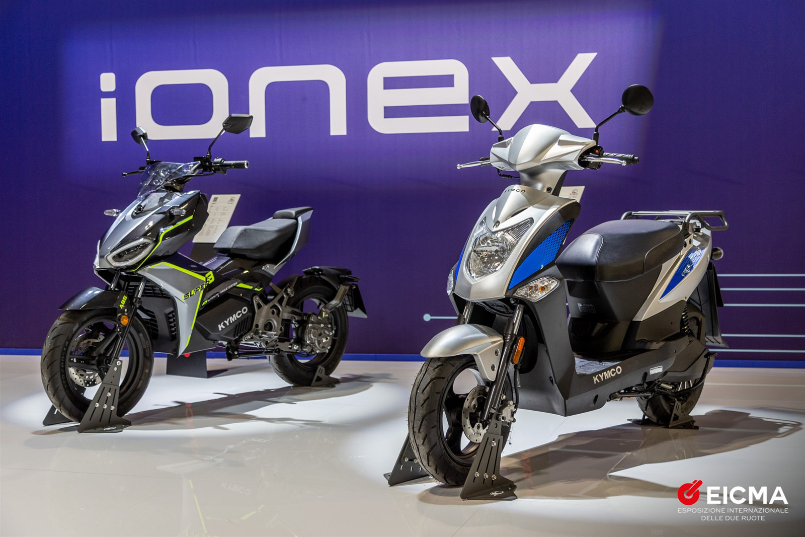 2021年米蘭車展現場,KYMCO也帶來多款大家熟悉的新車、概念車,例如雙缸三輪大型重機CV3、電動概念車F9等,Ionex車款、換電櫃也來到米蘭車展實地展演。