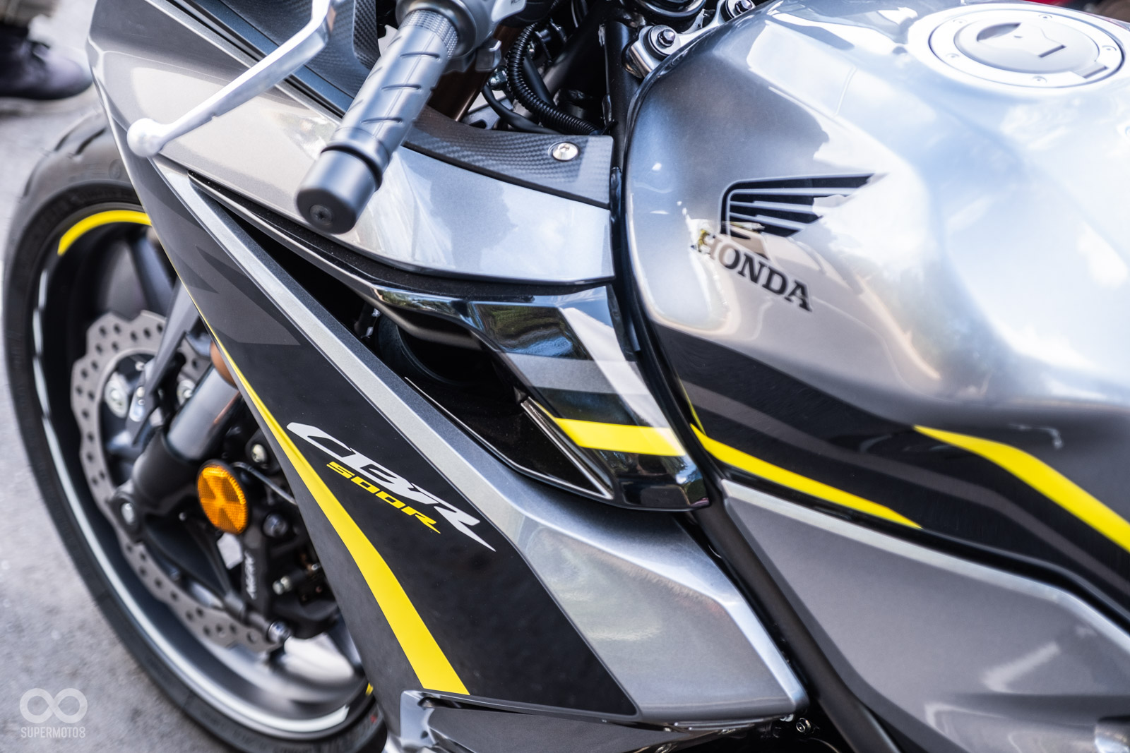 外觀上2022年式的CBR500R依舊維持和前一代相同的造型設計,較為銳利外觀除了具備家族化特徵之外,酷似上一代CBR1000RR的車頭更充滿戰鬥感;車尾部分也在本次改款中獲得一個略為上揚的車尾與金屬感後牌架,整體質感提升不少,不會讓人有入門車的平價錯覺。