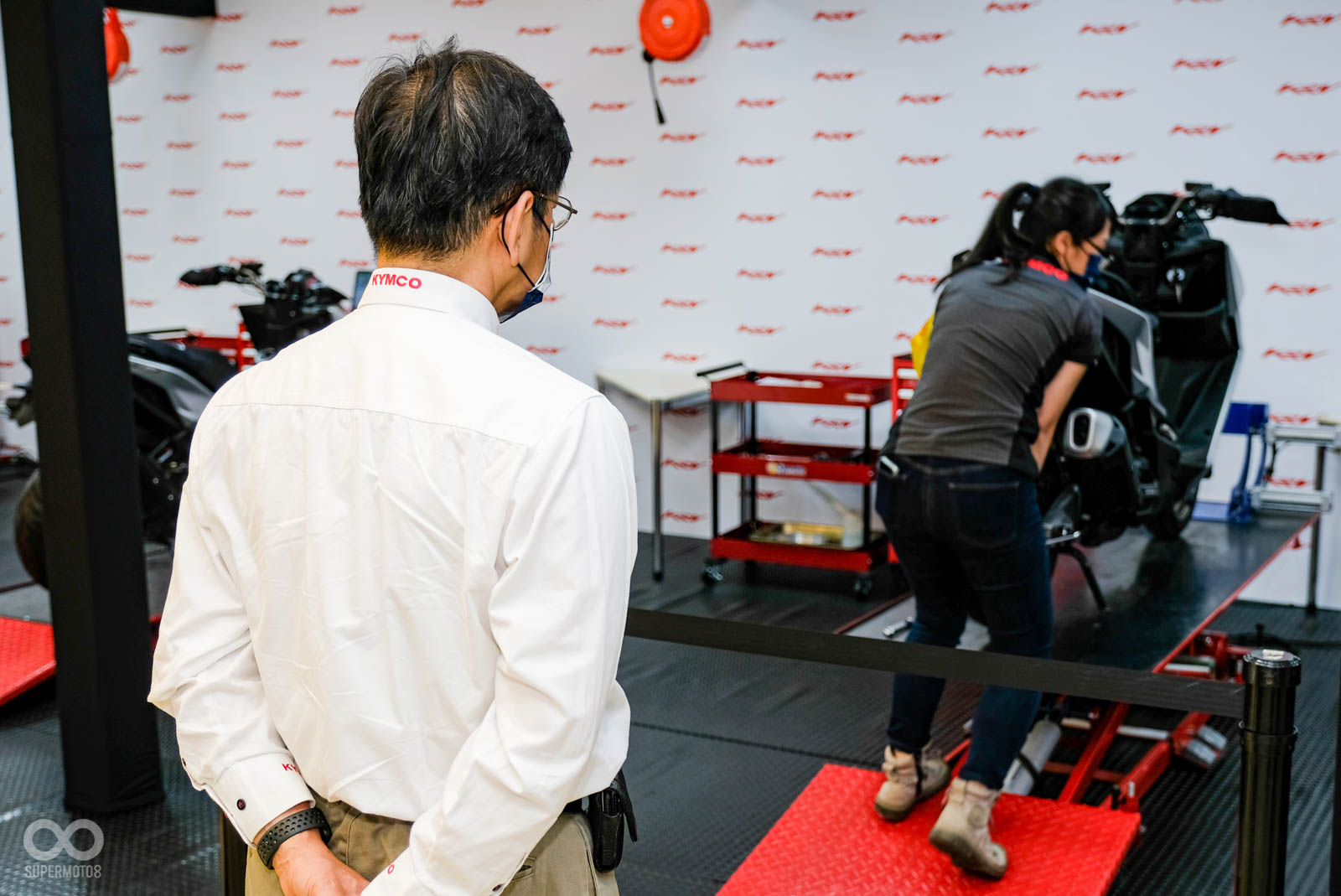 技師技術測驗過程中,才剛從金門跑完行程返台的KYMCO柯俊斌執行長也親臨現場進行考察,柯執行長表示KYMCO多年沒有舉辦全國技術競賽,今年再度舉辦主因是新世代機種採用更多新技術、新科技;技師的維修功力、技術知識需要不斷精進,才能確保消費者擁有最完整的車輛體驗。