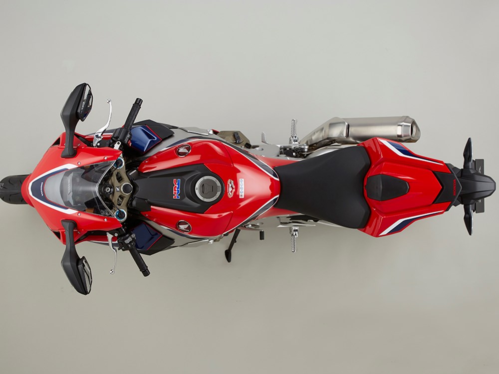 從外觀上如果要說2017年CBR1000RR是一輛大改款的車,或許有人不以為然,因為從外輪廓線條、車尾造型到車頭設計,都能看見2016年式樣的影子,加上新家族車頭已經在上市的CBR500R亮相,而早些公布的CBR250RR也採用相同設計,所以2017年CBR1000RR的外型便少了驚喜。整流罩的設計比前代更為俐落,雖然採用相同的兩片式設計,但是新款整流罩面積更小,車架幾乎完全裸露,多了陽剛的肌肉感。外型最引人注目的就屬巨大的排氣管,這樣的砲管令人連想到上個世紀的CBR900RR,由於這十年來仿賽的排氣管由側置流行為中置,又從中置回到側置,而且尾管越來越短小甚至能完全隱藏,但今年一反常態出現復古的大型尾管,可見這是因應環保法規日益嚴苛下的必然結果,而排氣管放大現象也在各品牌中出現,會成為未來幾年的主流。