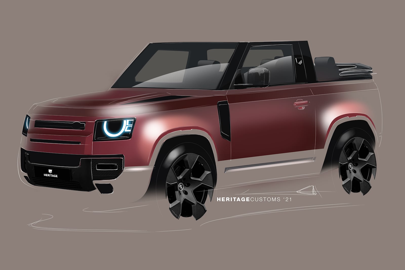 開著一輛Defender在路上已經是路人注目的焦點,擁有硬漢形象之外,在全新的設計之下又增添了科技風味,而現在Heritage Customs更打算推出敞篷版本,這輛車的基礎是用短軸的Defender 90,並且將B柱之後的車頂完全切除,換裝上電動軟篷的結構,雖然實車還沒有打造出來,但光是用電腦合成照片就已經足夠吸引人,而且已經預告全球限量只有五台的殘酷限量事實,相信若是真的打造出來的話,會吸引不少改裝大廠相繼模仿。