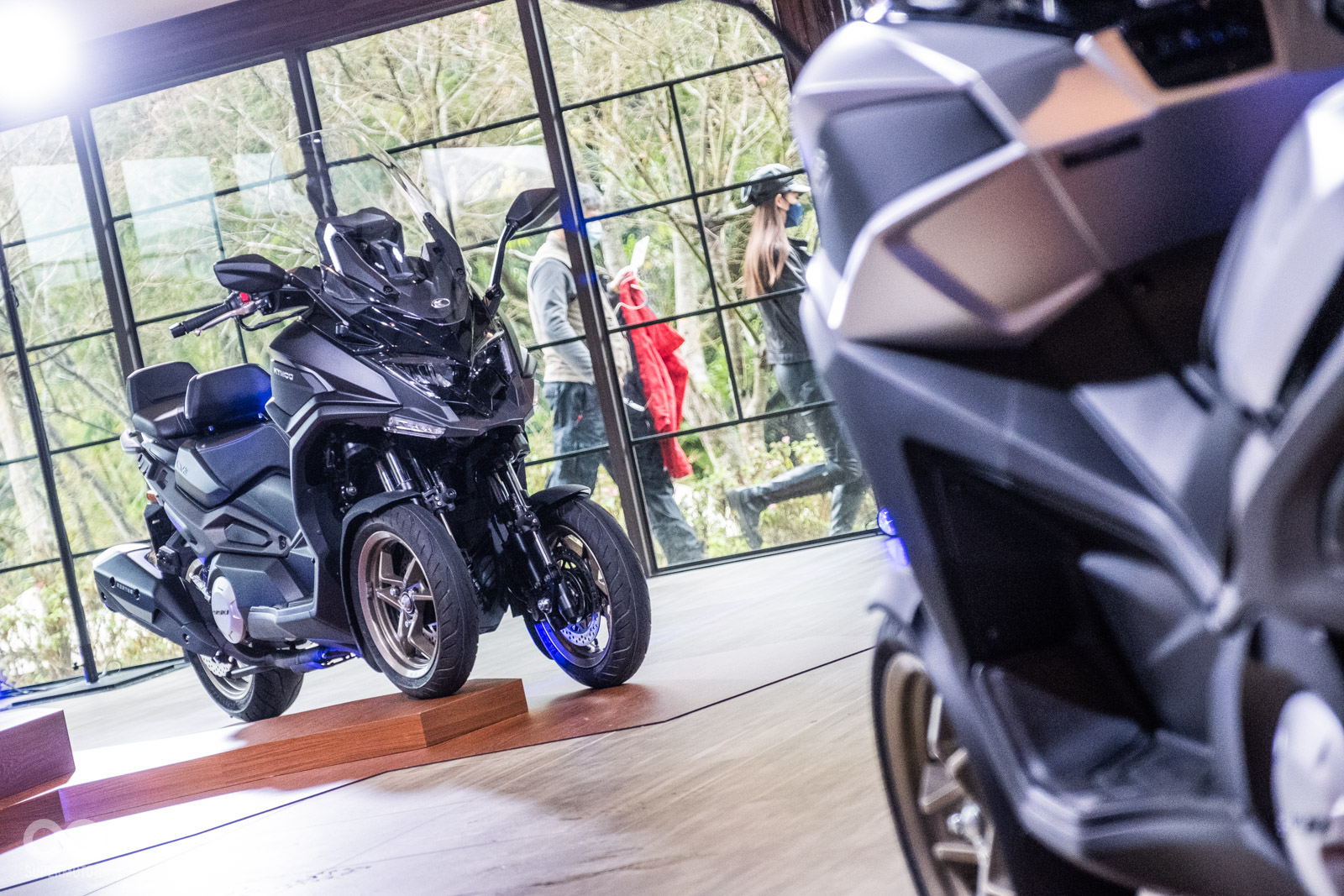 我想大家應該都發現,我們今天是淋雨進行CV3試乘體驗,但POWER/RAIN兩種動力模式低轉反應並無明顯差距,依舊需要細膩控制油門開度,加但面對陽明山刁鑽的小彎山路,CV3帶給我遠超預期的靈活表現,偏重的懸吊阻尼加上壯碩車身尺碼,符合CV3設定的旅遊車款舒適調性,甚至有一瞬間,CV3帶給我類似當年騎乘HONDA GOLDWING的動態感受。