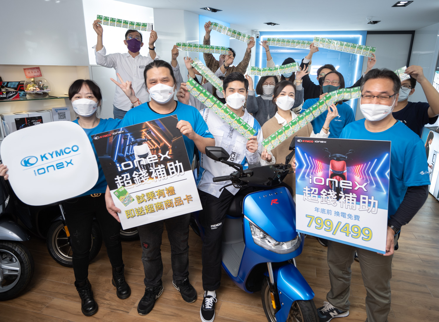 Ionex全台專賣店熱鬧迎接「Ionex為你先發 超錢補助」,來店賞車試乘之後,留下有效個資與聯繫方式,即可獲贈7-11超商百元商品卡。Ionex行銷長林振盛表示:「此次Ionex搶先市場推出購車優惠活動,祭出最強購車補助、資費優惠、消費者體驗贈禮,優惠活動三箭齊發,就是要回饋所有支持者。」