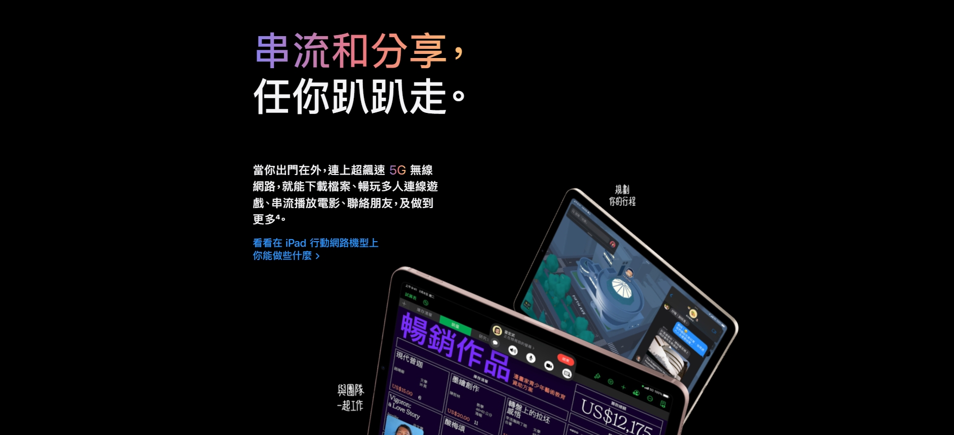 效能方面,iPad Air 5本次升級M1晶片之後,比起前一代性能更進一步提升,此外兩萬元有找的價格,更是比同價位的WINDOWS筆電效能快上兩倍;和iPhone SE一樣,iPad Air 5也獲得5G升級,讓使用者無論在何處都有最快的網路體驗;此外,APPLE也升級了iPad Air 5的USB-C傳輸速度,能支援更大量傳輸。