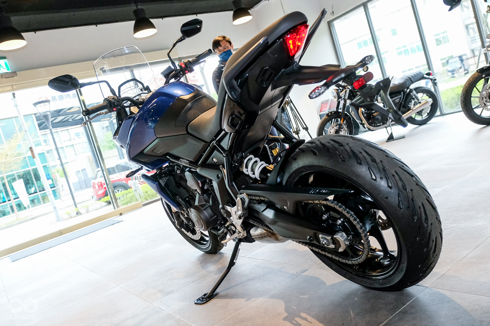 車尾則是和TRIDENT 660走類似的短尾設計,配上左右兩側後扶手、寬大的一體式坐墊,給予TIGER SPORT 660動感俐落的尾部線條,整台車從頭到尾看起來都很有運動感,與傳統ADVENTURE的既定印象不同,TIGER SPORT 660更偏向ADVENTURE TOURING的冒險旅行車風格。