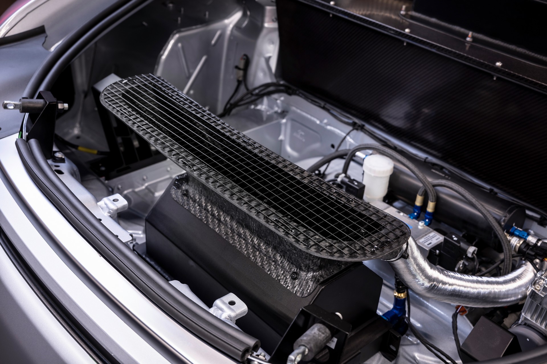 車內配備可看出來它就是一輛真正賽車,粗壯、高強度防滾架圍繞於車室空間內,碳纖維賽車座椅、五點式安全帶、車頂逃生艙口、滅火器系統、賽車安全網、訂製方向盤都是比賽車專屬。中控台由碳纖維重新製作,只保留賽車會使用到的按鈕,能對車輛進行特殊調整來符合車手駕馭風格。