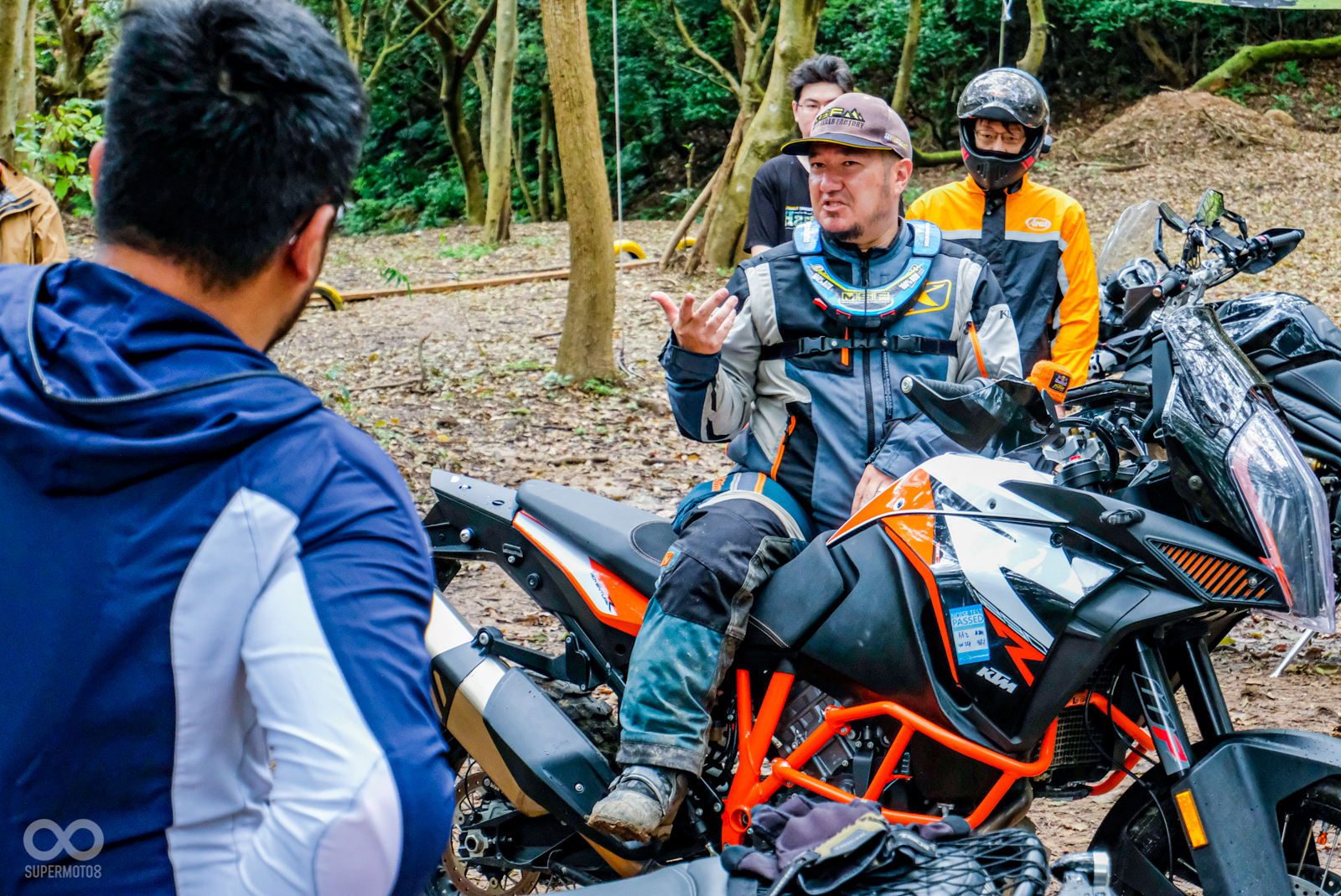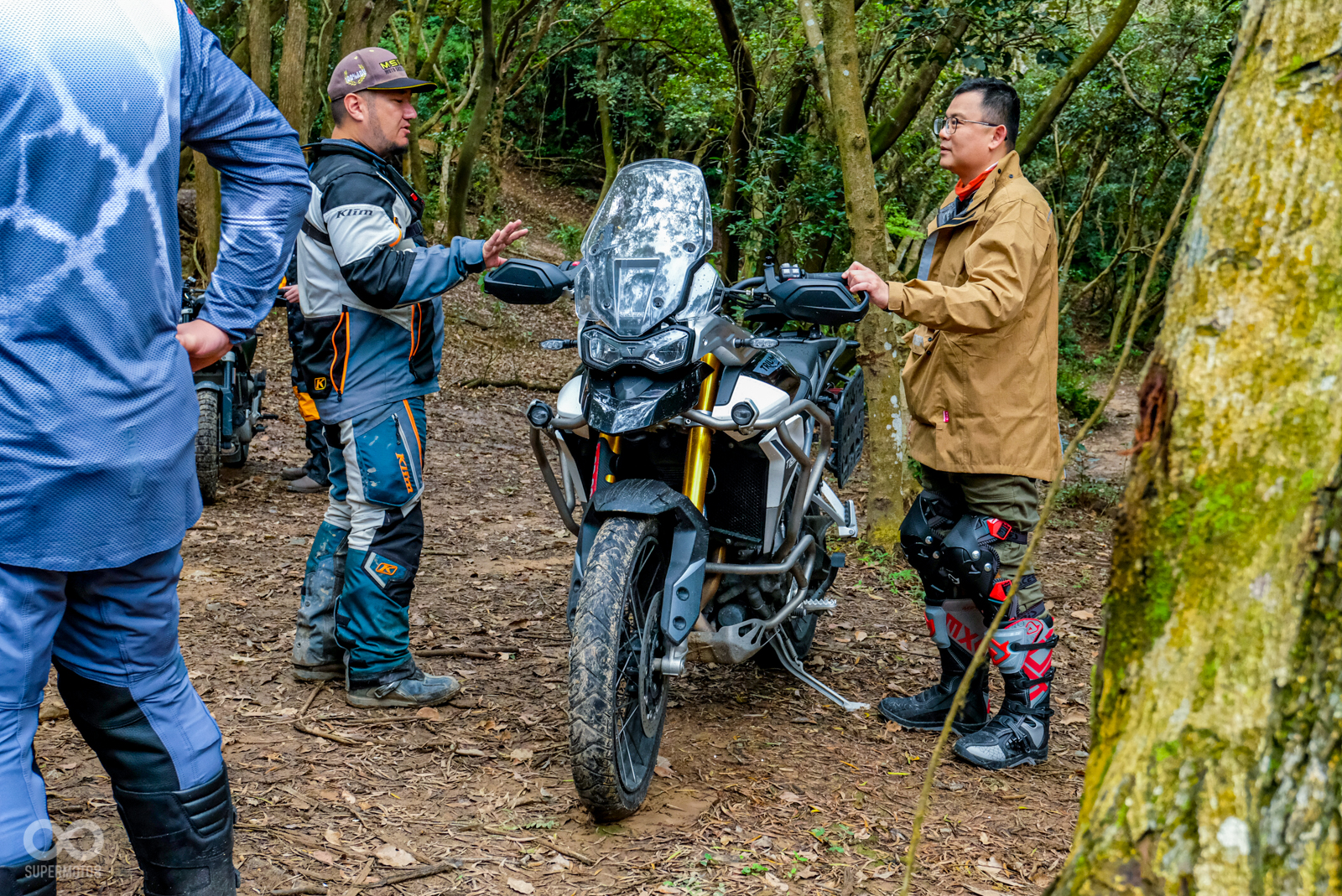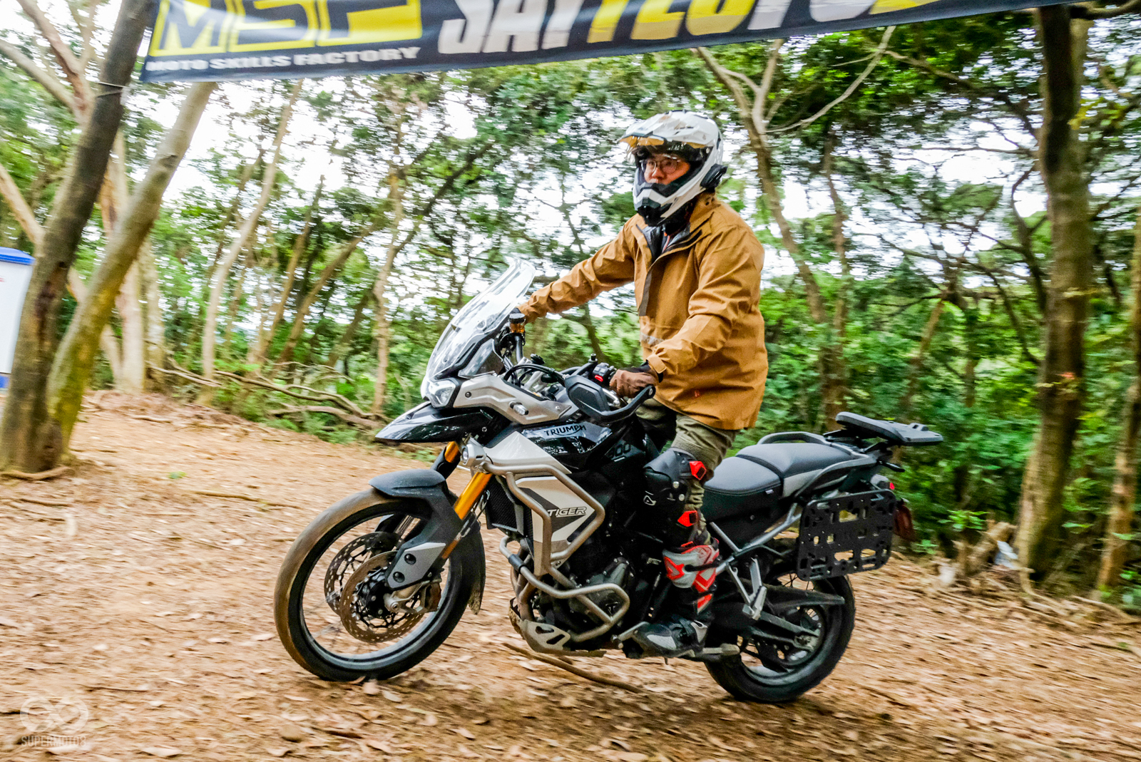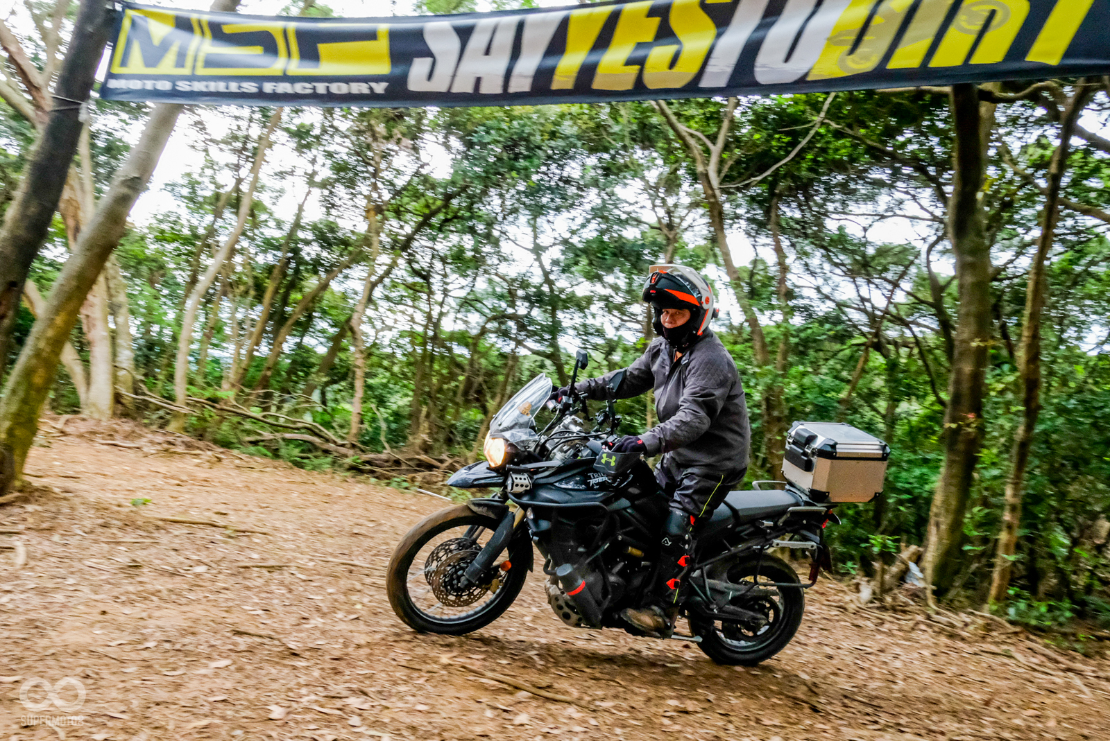 在正式開始之前,MSF教練團隊同樣先針對基礎的越野騎乘知識、車輛設定、找出重心平衡等靜態教學,讓學員們先熟悉越野前的車輛準備,以及騎乘時的基本操作和觀念;教練也不斷強調,只要掌握越野的知識和做足準備,騎乘大型ADVENTURE車款來玩越野其實一點也不恐怖。
