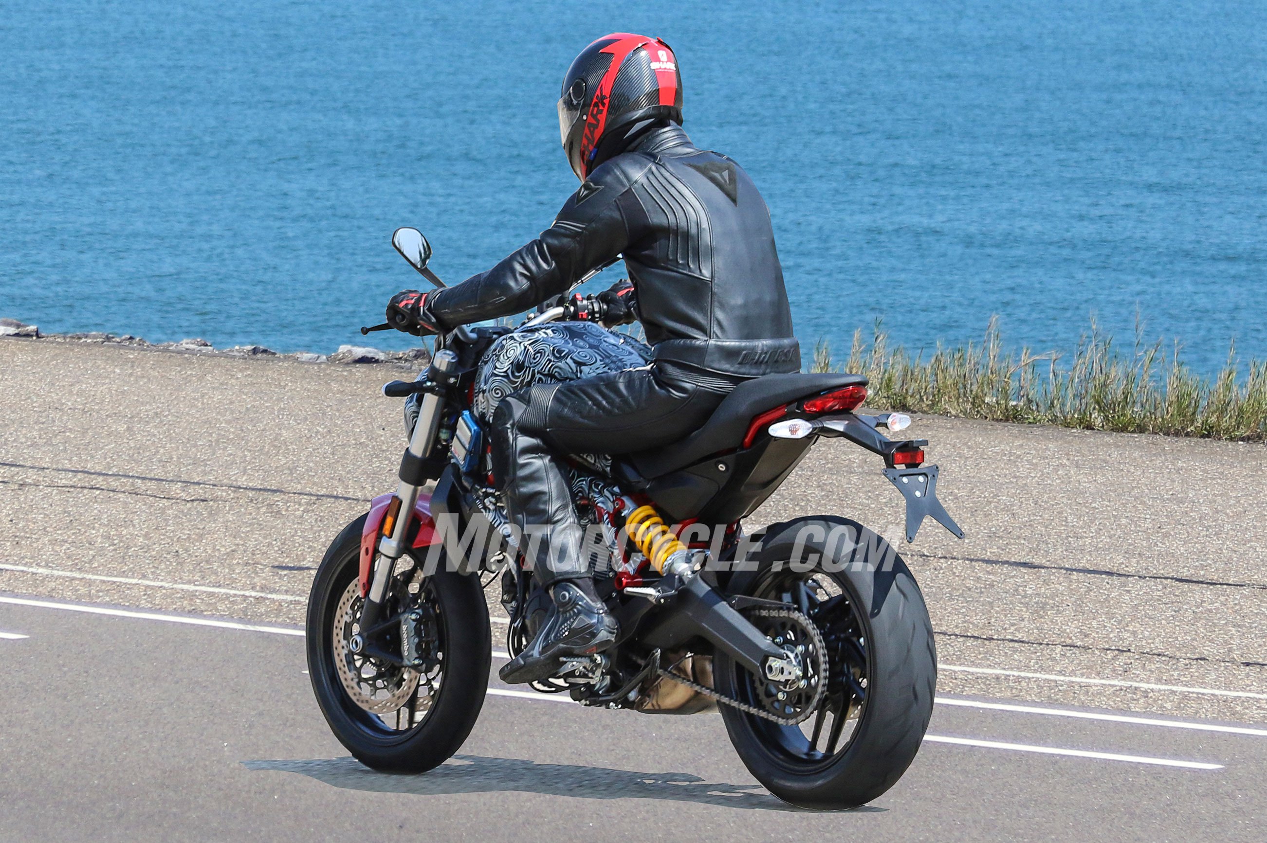 第三台的配備高檔許多,定位明顯與Monster800不同,粗壯的倒立式前叉,雙碟搭配Brembo,DUCATI經典的單搖臂也是一並奉上,此外還搭載了油壓離合器,能有效減少騎士負擔、提升離合器手感,引擎為水冷形式,從Monster目前的產品級距推估,極有可能使用與SperSport同一顆,排氣量937c.c.的Testastretta 11°引擎,以填補Monster821至1200之間空缺。