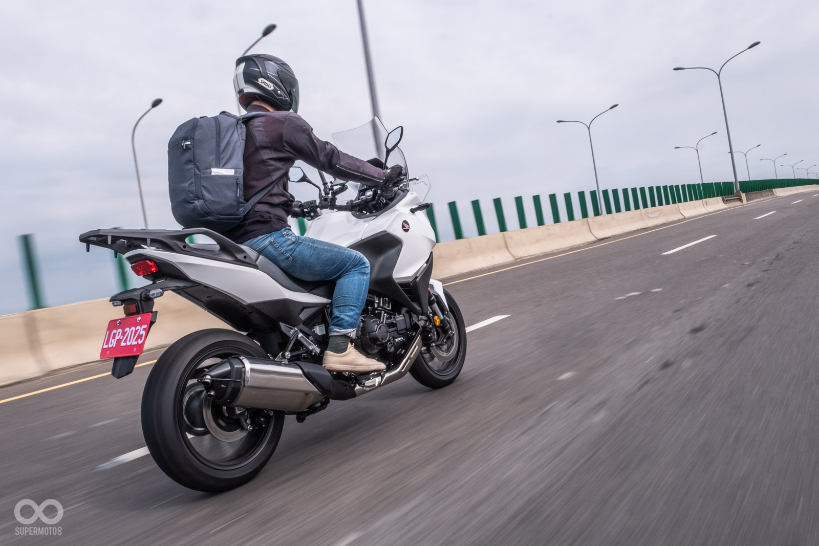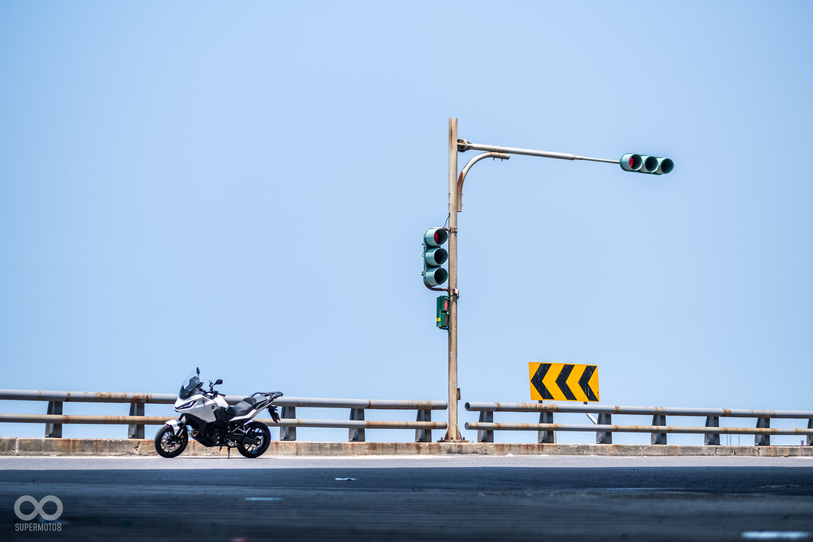 這次的移動過程中,我們直接透過台61西濱公路南下苗栗,面對破爛的西濱公路,HONDA NT1100的超大風鏡、前後150mm懸吊行程、貼心的手把、腳部擋片倒是給予騎士滿滿的安心感,懸吊性格也恰好介於運動街車/大型ADV車款之間,雖然不會有AFRICA TWIN那種在雲上騎車、毫無感覺的誇張程度,但至少我們台北-苗栗來回的過程中,下車都是滿臉笑容且心滿意足的。