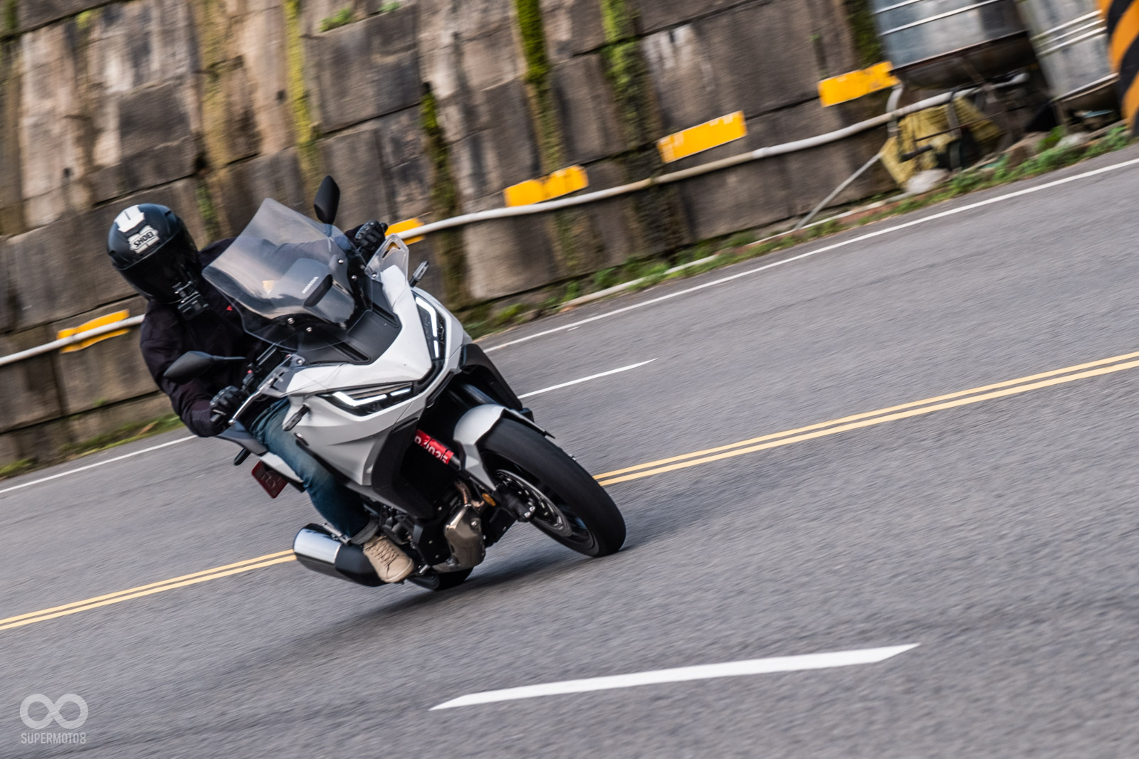 過往大型ADV那種躺進彎中伴隨而來的搖晃感,來到NT1100上被大幅削減,搭配高聳的車身不斷引誘你挑戰更深的傾角,加上來自越野ADV更柔軟的車架設定,讓整體回饋感都變得溫柔,讓你不由自主持續提升進彎速度。