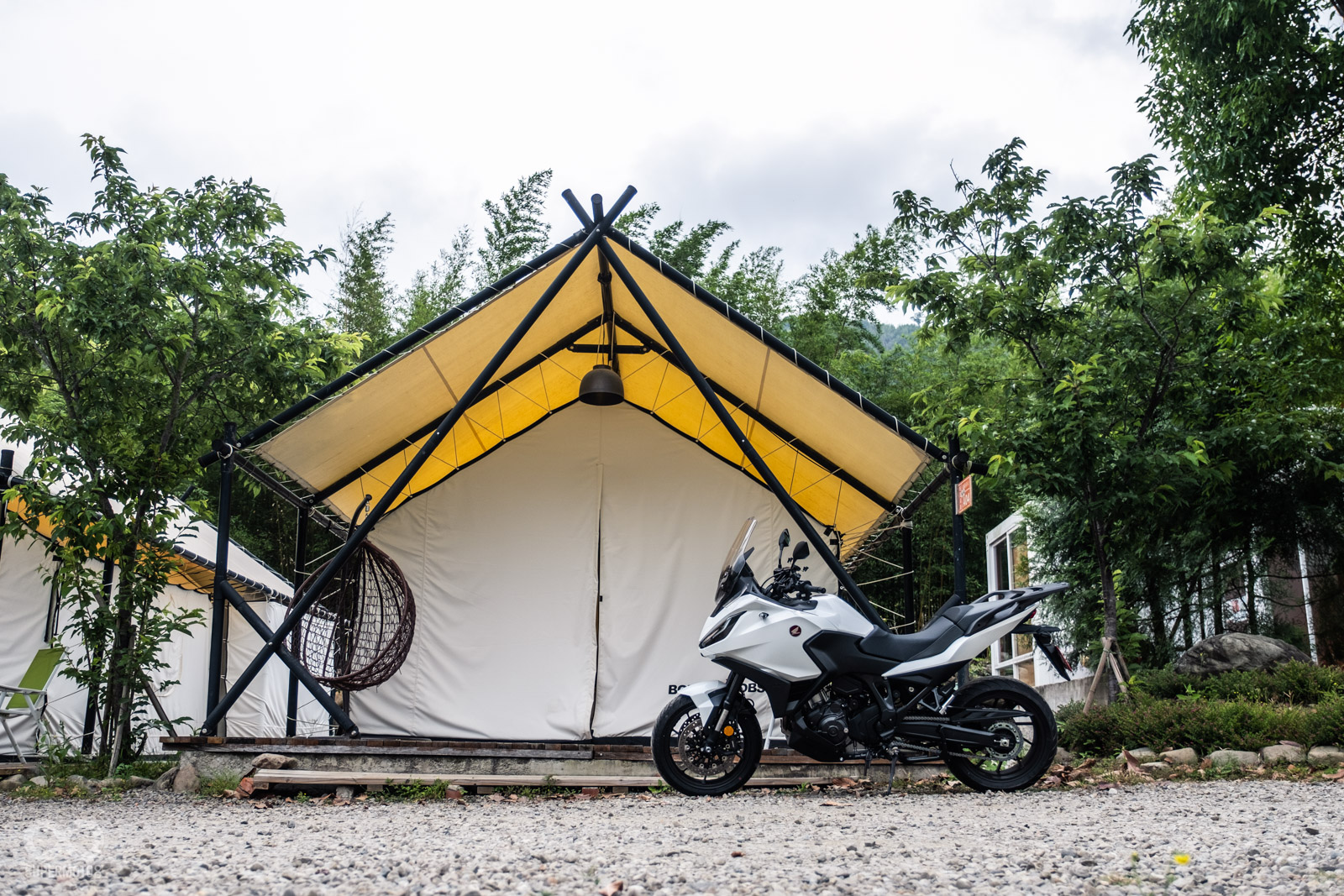 這次試駕也有些特別,我們從台北來到苗栗泰安的露營區過夜,這個露營區可是要價5000元/人的高級露營區,當然你不用自己搭帳篷,甚至帳篷內還有冷氣等豪華配備,呼應HONDA NT1100產品對應許多人愛旅遊、探索秘境喜好。兩天騎乘NT1100往返台北-苗栗的工作過程中絲毫不感疲累,沒有詭異的腰酸背痛感,甚至回到台北後,還能舒適地生出這篇試車報導呢!