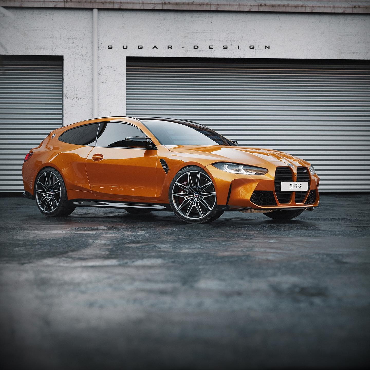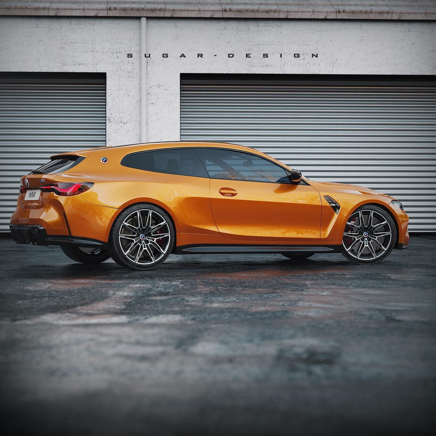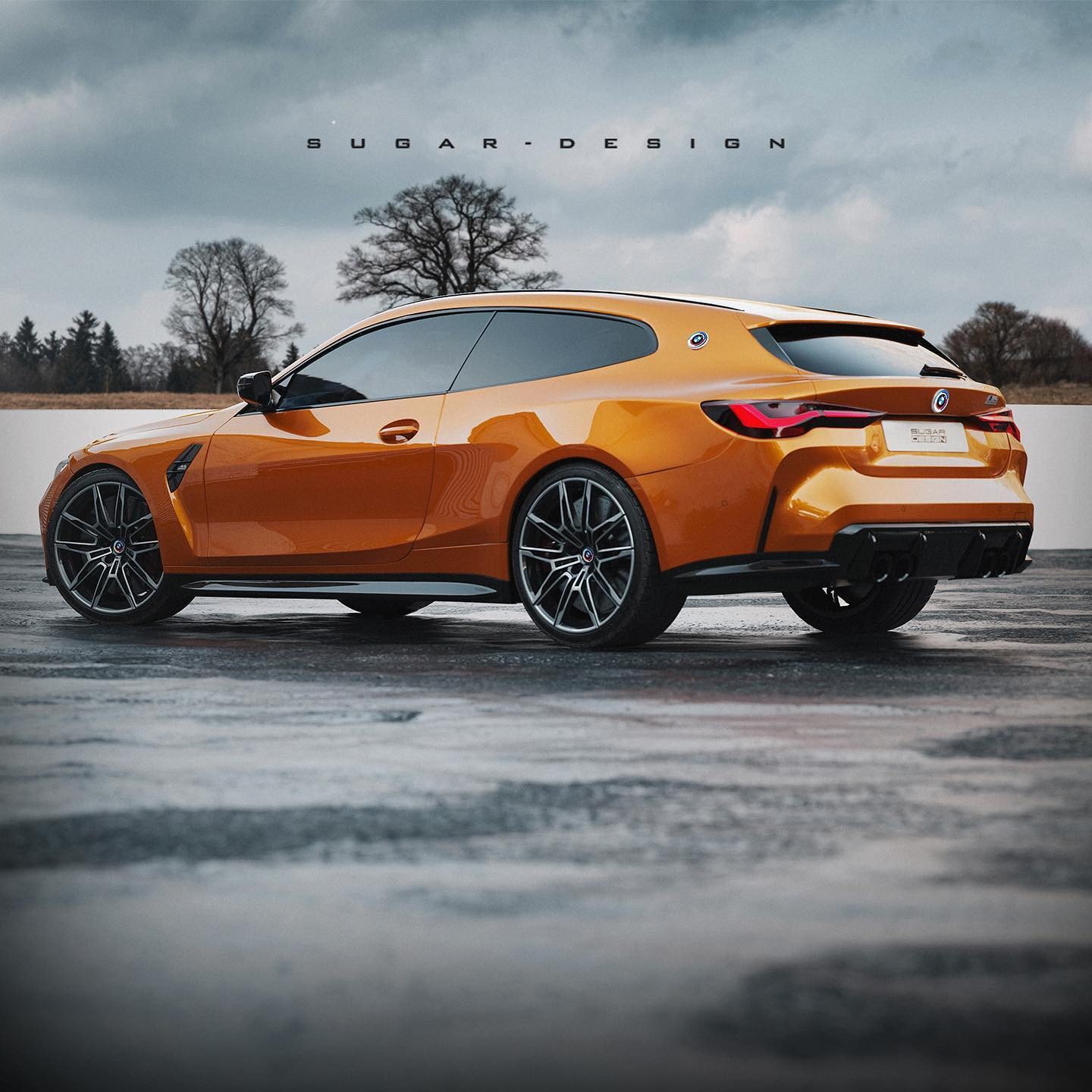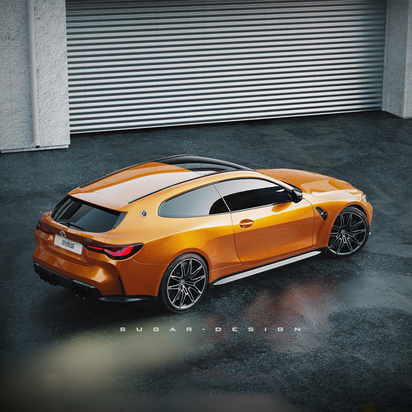 現在網路上的知名合成藝術家Sugardesign_1也用他自己的方式來紀念BMW M成立50週年的日子,他利用了M4 Competition Coupe為基礎打造出了M4 Shooting Brake,整輛車在B柱之前看起來幾乎相同,不過在B柱之後則有了重大改變,原本應該向下的跑車斜背造型變成了一個向後延伸的車頂,旅行獵跑的樣貌呈現出實用的多元氛圍,但雙門的造型卻又訴說著這是一輛強悍跑車,當然車尾誇張的空力套件以及排氣尾管都在說明這不是輛好惹的車,只可惜這一切都只是幻想而已。