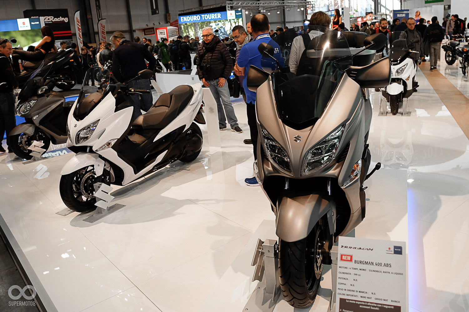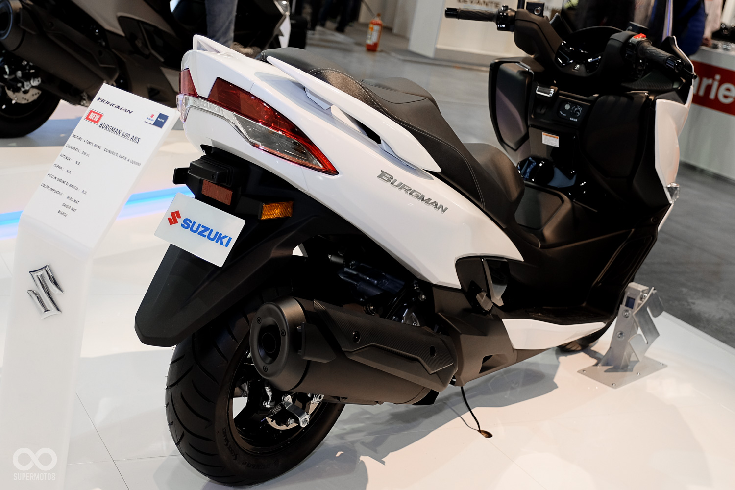 SUZUKI在米蘭車正式為新一代BURGMAN 400接下頭紗,新款的中堡依循家族風格,造型向大哥BURGMAN 650靠攏,但明顯苗挑不少,線條俐落動感,與650穩重敦厚的路線不同,BURGMAN 400有著一樣的優雅,但更年輕也更性感。