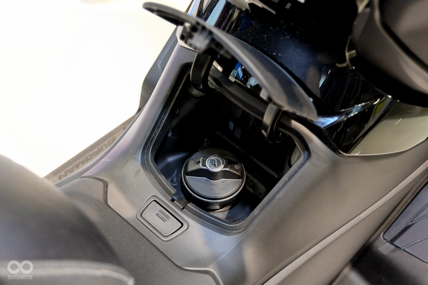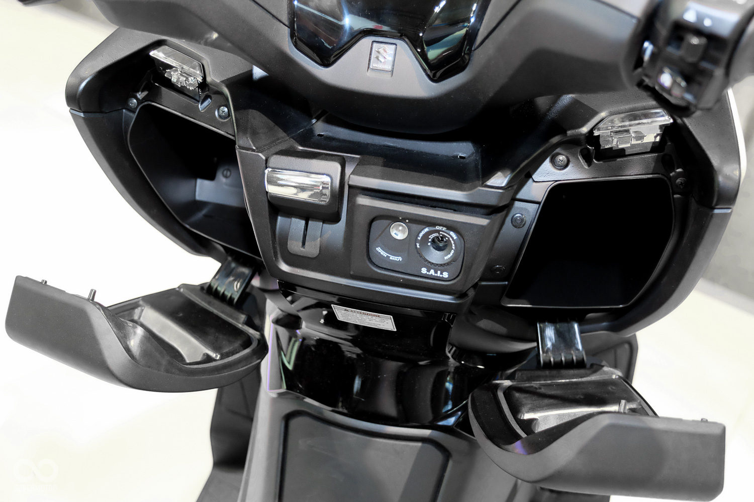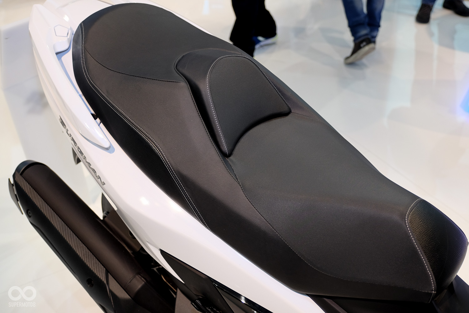 而BURGMAN車系一直為人所樂道的舒適性與便利性,在全新的BURGMAN 400上當然也沒少,坐墊泡棉比起上一代厚度增加,乘坐感受也更為紮實,搭配上厚達20mm的腰靠,幾乎已是沙發椅的等級,坐墊下的置物空間更是高達42公升,能輕鬆放入兩頂3/4安全帽,前方手套盒內還附有12V的電源供應,長途旅行時,無論是充手機還是連接行車紀錄器都相當便利。
