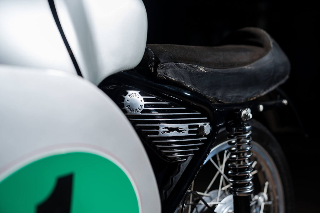 車架編號260033,與引擎號碼一致,這是PARILLA公司的基本特色,並且使用了更優質的鋼材來提升車體穩定性。這台250 Grand Sport重新設計了車台、降低的後車架導軌和一個管狀後搖臂,主要目的是讓更現代的懸吊設定可以直接套用在這部具有歷史的車上。車架和搖臂重新整理之後並塗成原來的黑色外觀。
