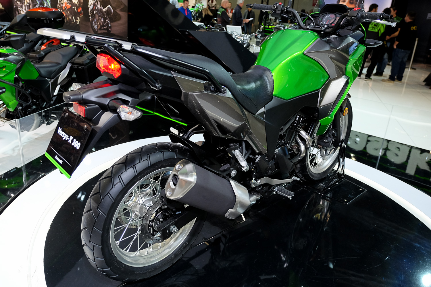 VERSYS-X 300配備一具296c.c直列雙缸水冷引擎,最大馬力38hp,這樣的動力足以應付都會與近郊的使用需求。車架為背脊式設計,將引擎與車架一同組合成車體結構,構造簡單且能減輕重量。懸吊則配有41mm正立式前叉與Uni-Trak中置後避震器;輪胎尺寸是標準的多功能車規格,前輪100/90-19及後輪130/80-17,車輛標配ABS系統與滑動式離合器。最誘人的是車尾裝置後行李箱架,且側邊支柱可以掛載側箱,這樣的配備對於休旅使用相當方便,再加上排氣量在台灣有路權與稅金優勢,如果能引進,喜歡旅行的玩家們就有更輕鬆的入門選擇。