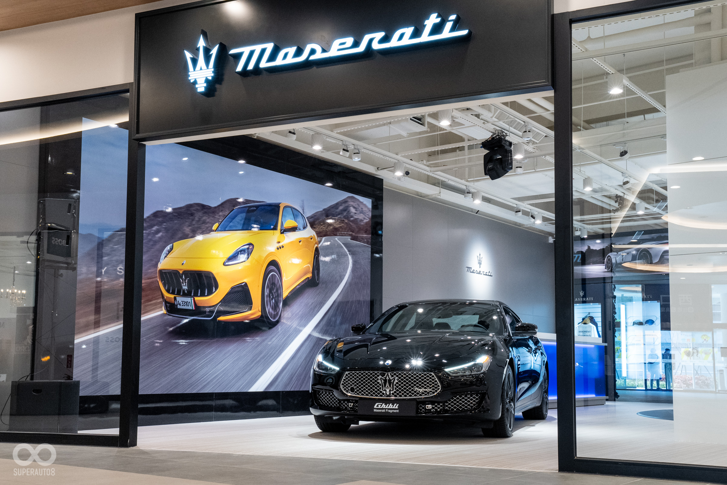 為了讓大台南地區的粉絲和消費者能夠近距離感受與眾不同的義式魅力,首次在國內開設的Maserati台南品牌形象館比照展示中心高規格打造。走進入口大門,隨即映入眼簾的Ghibli Fragment,是以「義式美學傳承者」Maserati聯手「文化の破壞者」藤原浩,共同設計激盪出的重磅聯名車款,LED電視牆上同步播放Maserati 品牌影片,傳達海神百年輝煌的傳奇故事;遵循品牌最新CI標準,接待櫃台採用Maserati藍色妝點,背後形象牆鑲嵌海神三叉戟廠徽與品牌字樣,左側巨型展示燈幕更可看到全新世代跑旅Grecale優雅動感的傲人英姿。