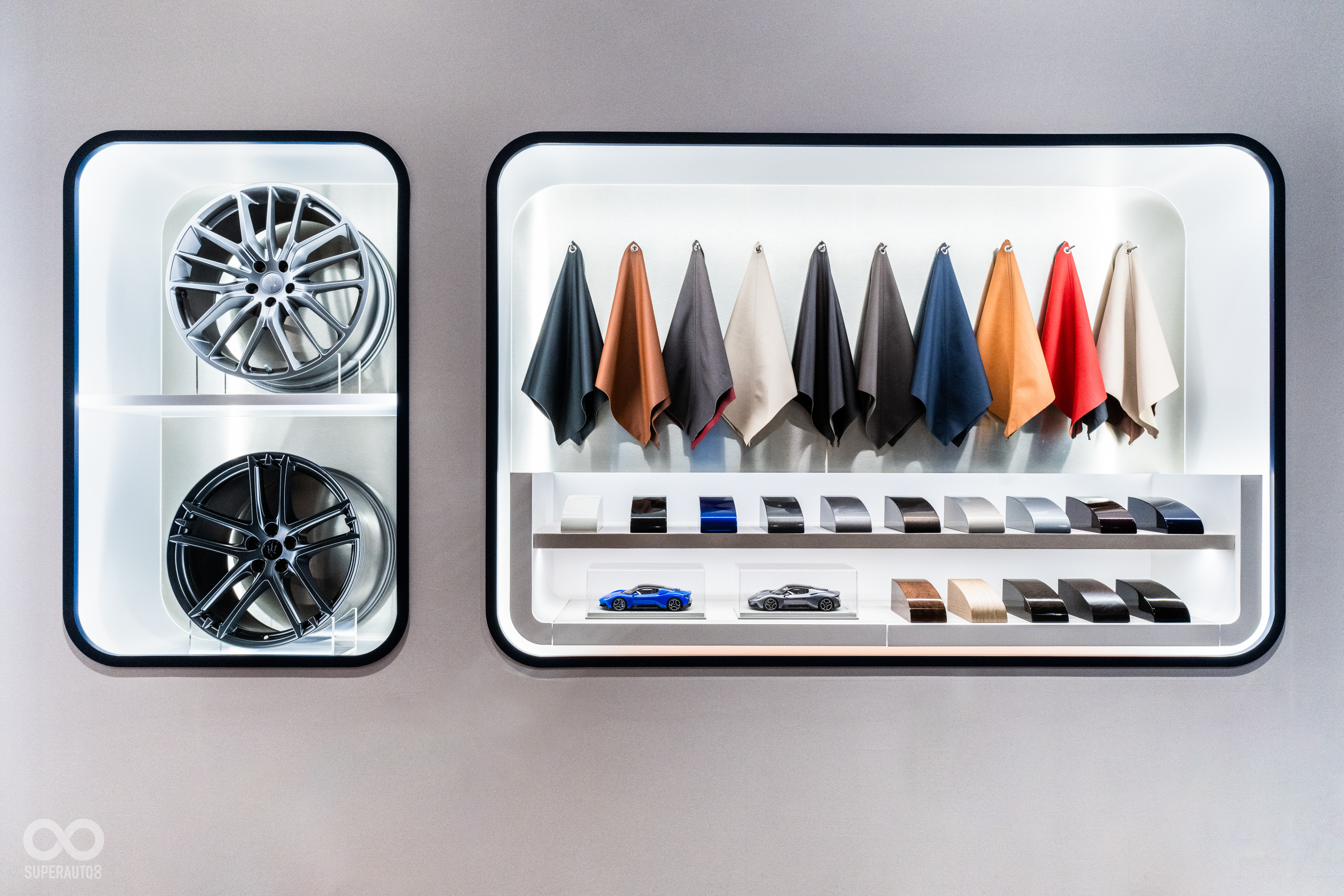 不僅提供開闊明亮的賞車空間,Maserati台南品牌形象館也設有與展示中心同等級的客製化選配區,採用隱密性較高的半隔絕空間規劃,讓消費者在此能夠更加輕鬆自在地發揮想像力,透過現場陳列的各式造型輪圈、車色烤漆色板、頂級皮革選樣與多種飾板材質,搭配出展現自我品味的個性化車款,也可利用選配項目更為豐富、自由度也更高的線上客製選配系統,進一步勾勒出心目中理想車款的具體樣貌。